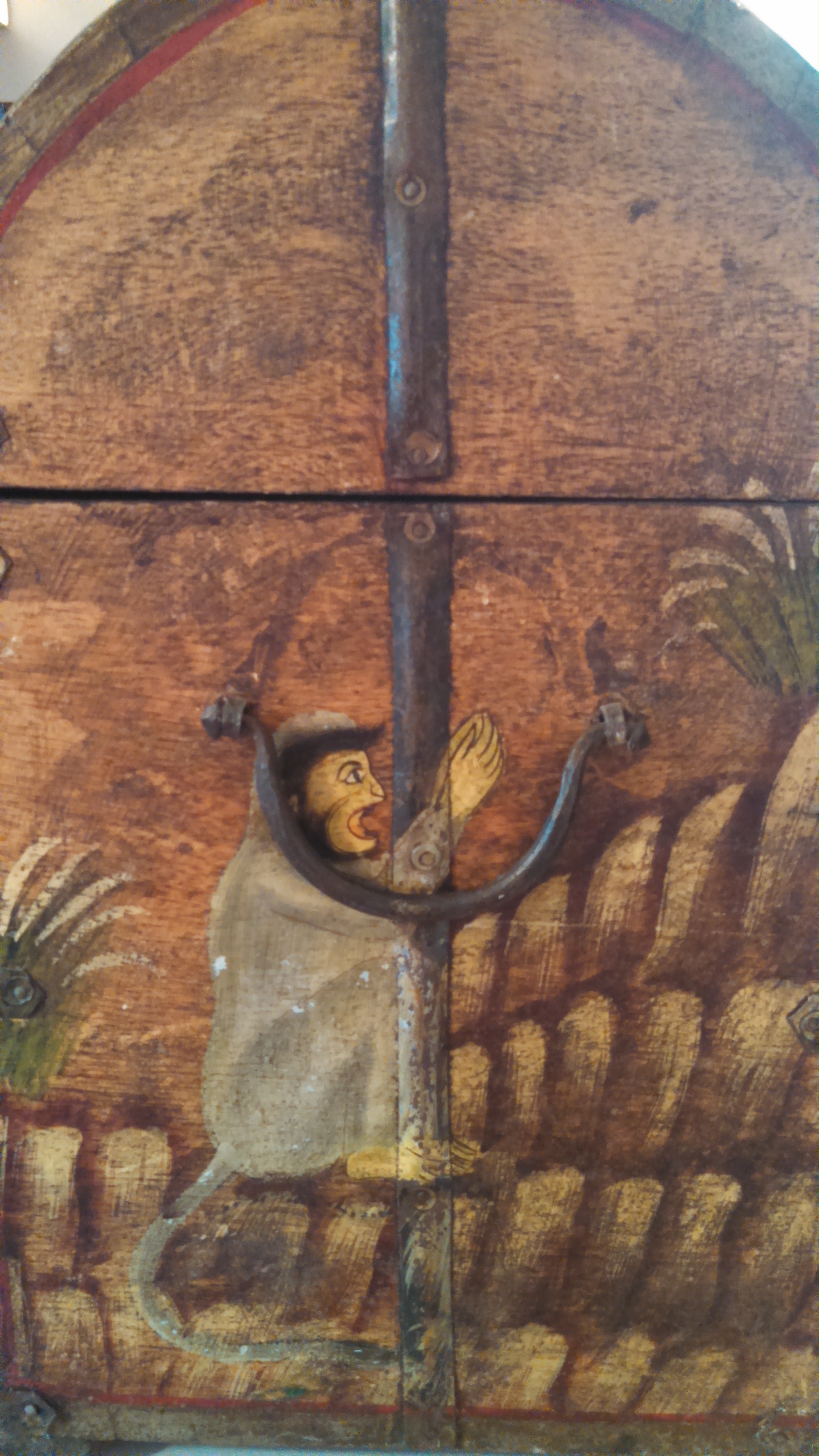 Wood, copper/brass (?) latch.