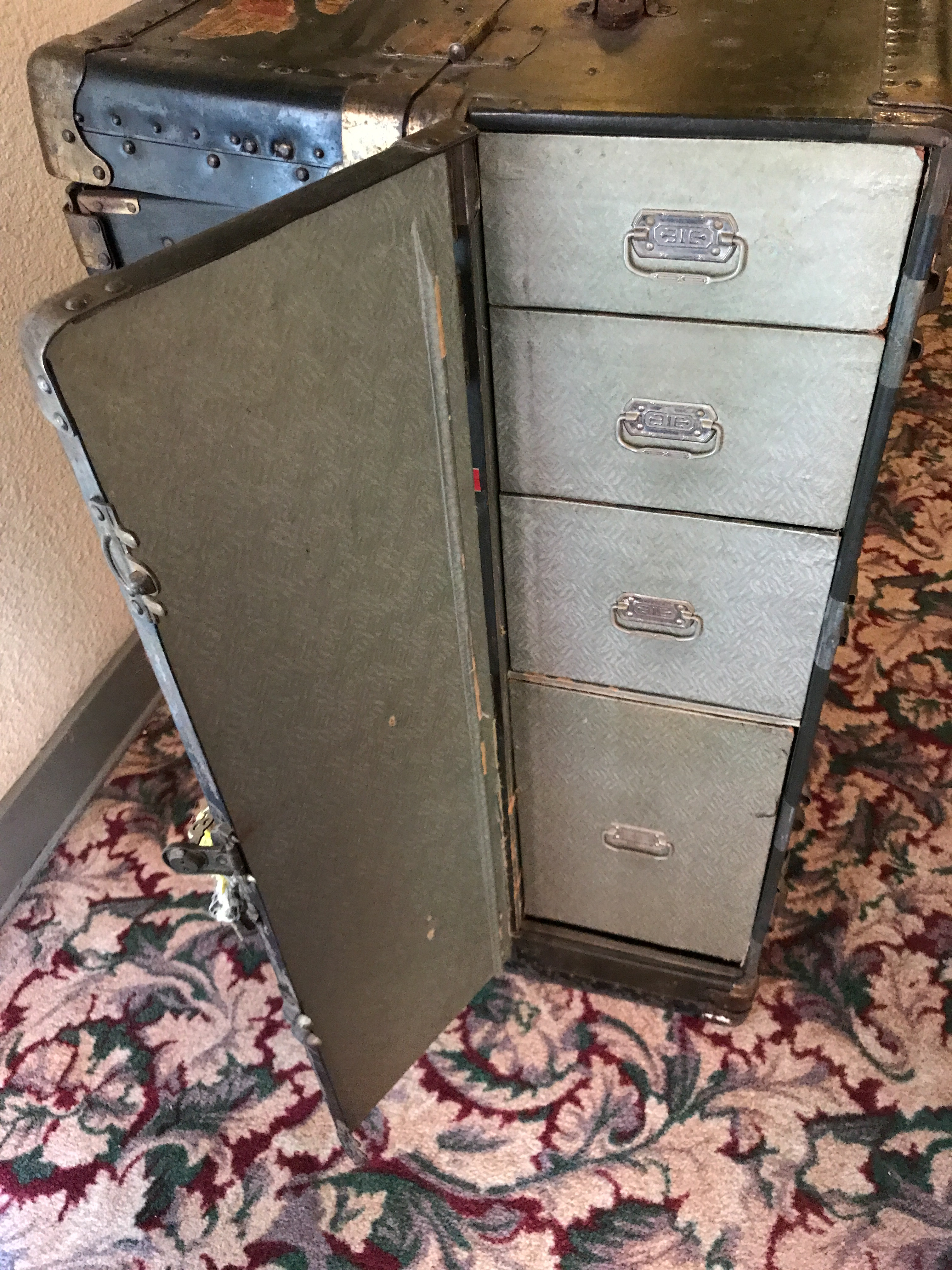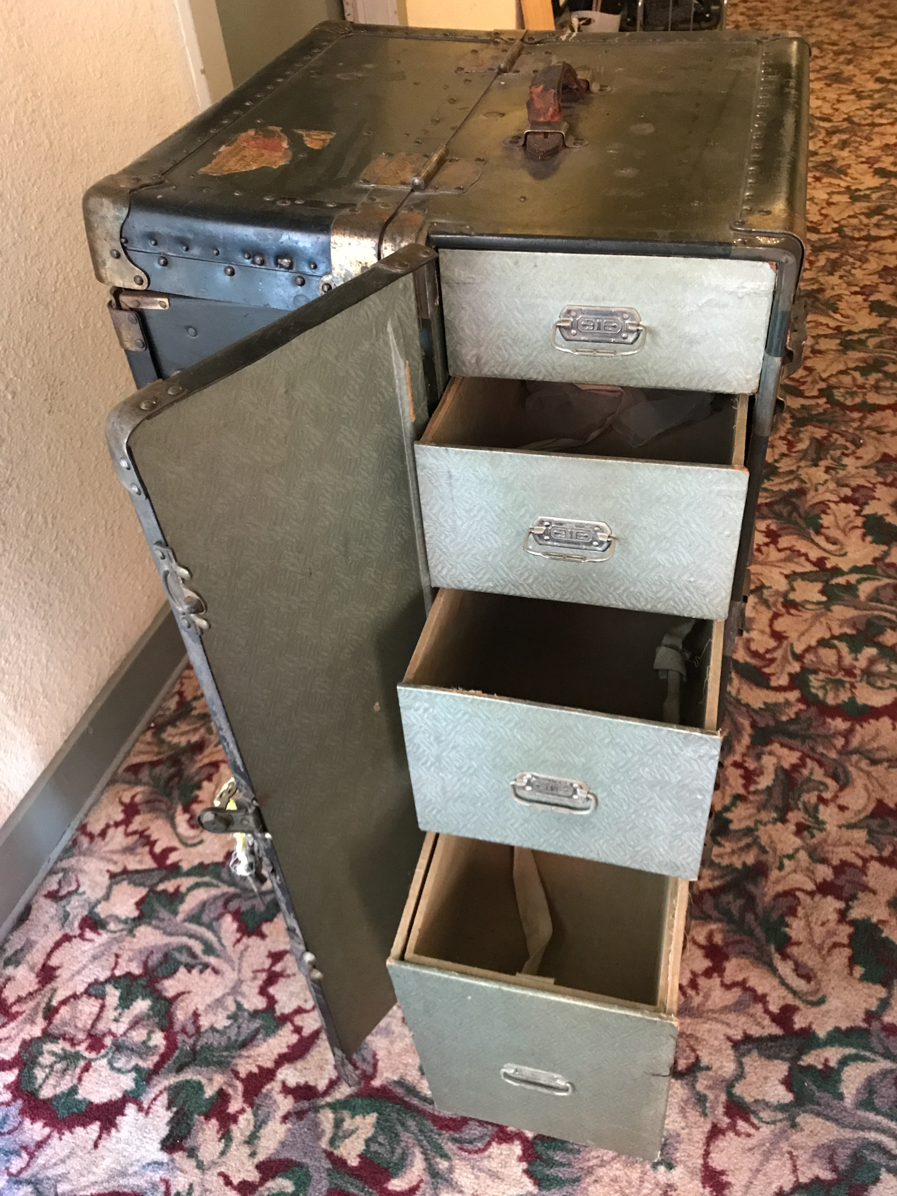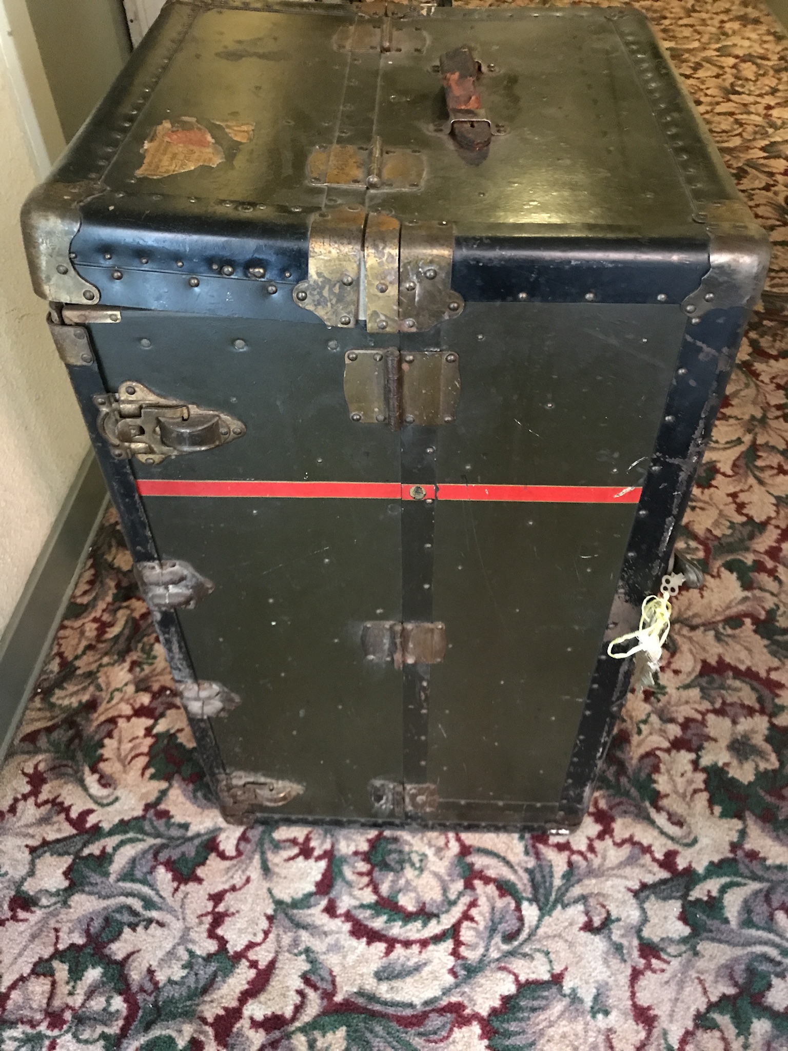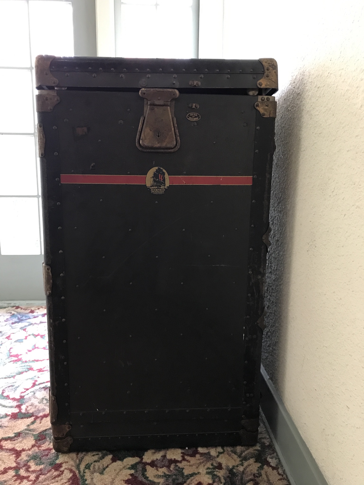 Antique Steamer Wardrobe Trunk made by the WinShip Company. It’s a hundred years old by now by a few years more or less. I got the original key for it two. This was given to me by my oldest tenant a few years ago. She lived to be 96 years old, meaning she was born in 1926. What was more interesting is that she lived in the same Hollywood apartment building since moving-in first in 1968! She worked all her life for the government and she traveled around the world extensively, and she was still living independently and fully agile at that age, living comfortably fully supported by her own life saving’s. Anyways back to this Steamer Trunk, she gave it to me, and told me that a relative once came to see her from the east coast back in the 70’s and she brought with her this trunk, took all of her stuff out, and then left it. So it has just been sitting in one of her closets ever since. Even though it is an aged and large item, it still is in good condition and there is no actual rusting as far as I could inspect and there is no mold or anything, and no smell. I was wondering just how much could this specific trunk cost? Thank You.