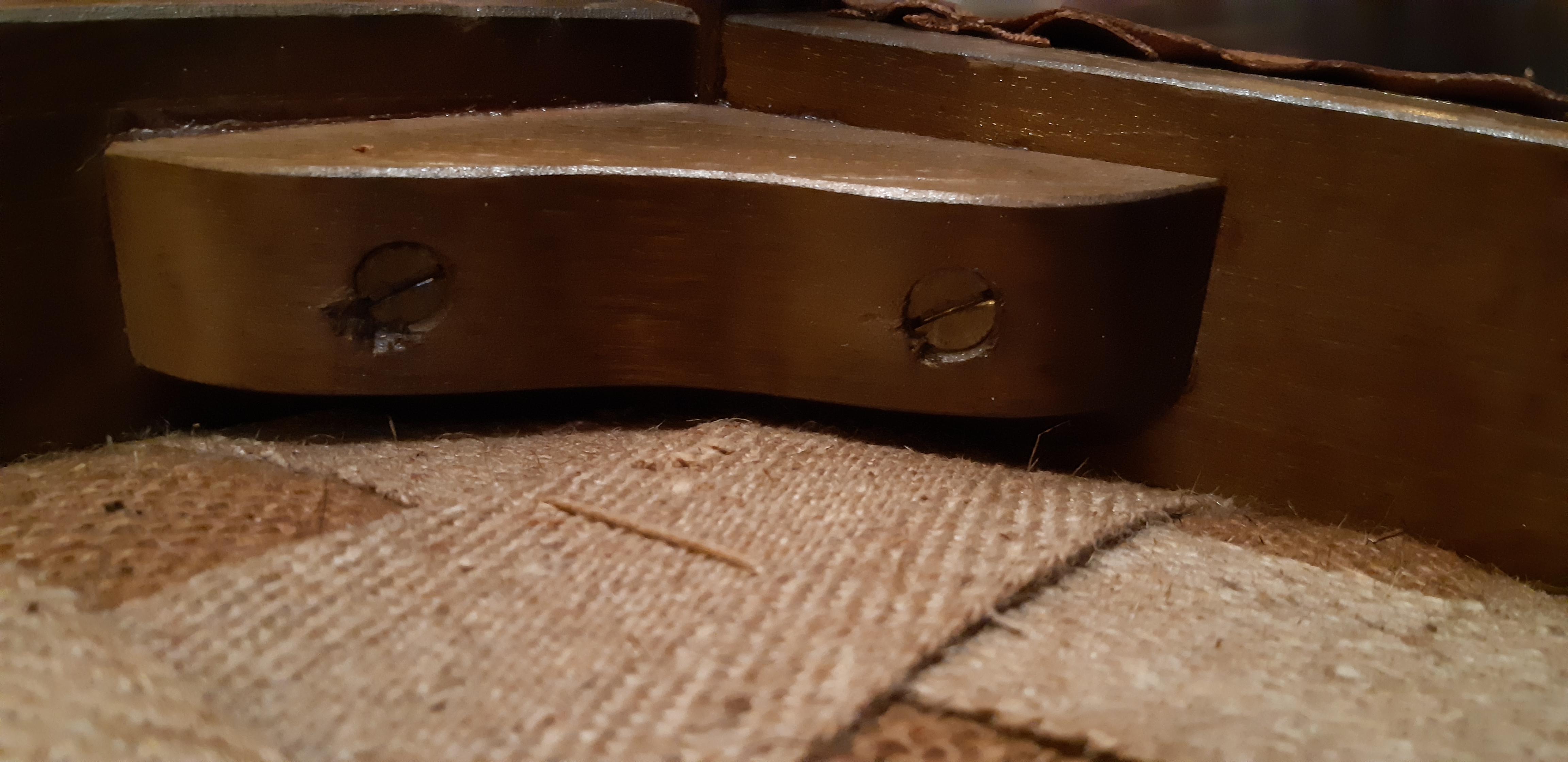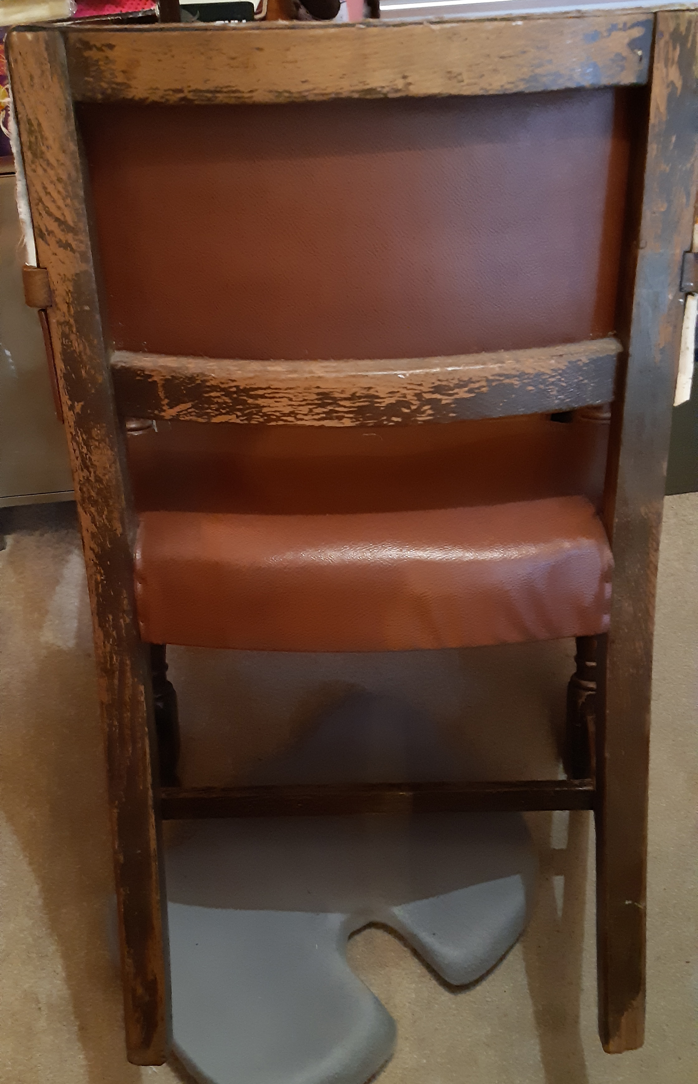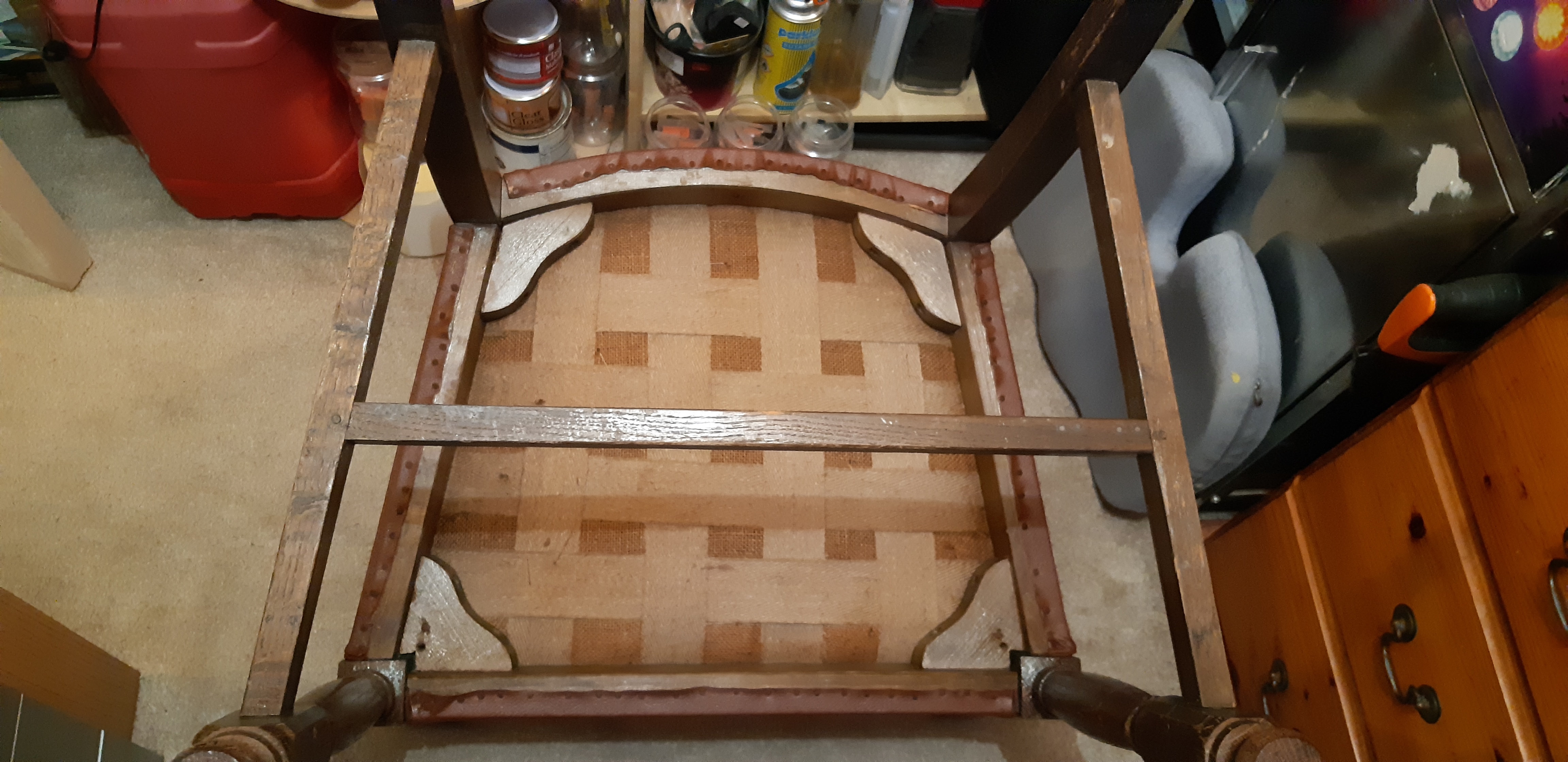 Here is the 2nd chair I have for anyone to evaluate. Again I know nothing about it and I just love the look. Most of the chair seams to be held together by wooden pins and blocks and there are metal tacks holding the leather seat cover in place, also what looks like old screws in all four of the seat corners. The seat itself looks like it is filled with maybe horse hair (see photo). Again can anyone enlighten me on the age, style worth. Many Thanks