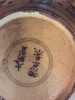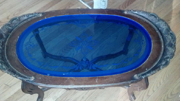 There is a small chip in the glass and a straight line on the wood (looks like it may be where the wood would have been glued?). You can see it if you look closely.