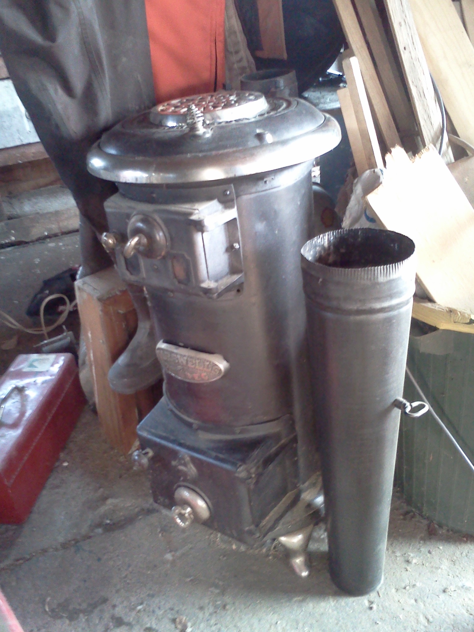 "Quebec Haeter" Stoves like this were designed to burn coal, most of them date from the late 19th century, but they were made through the 1930's. They were designed to fit into small areas, often used in train stations for area heating. Values for them tend to be modest as they are not designed to burn wood and need frequent loading. Most tend to sell for about $75.00 at auction.