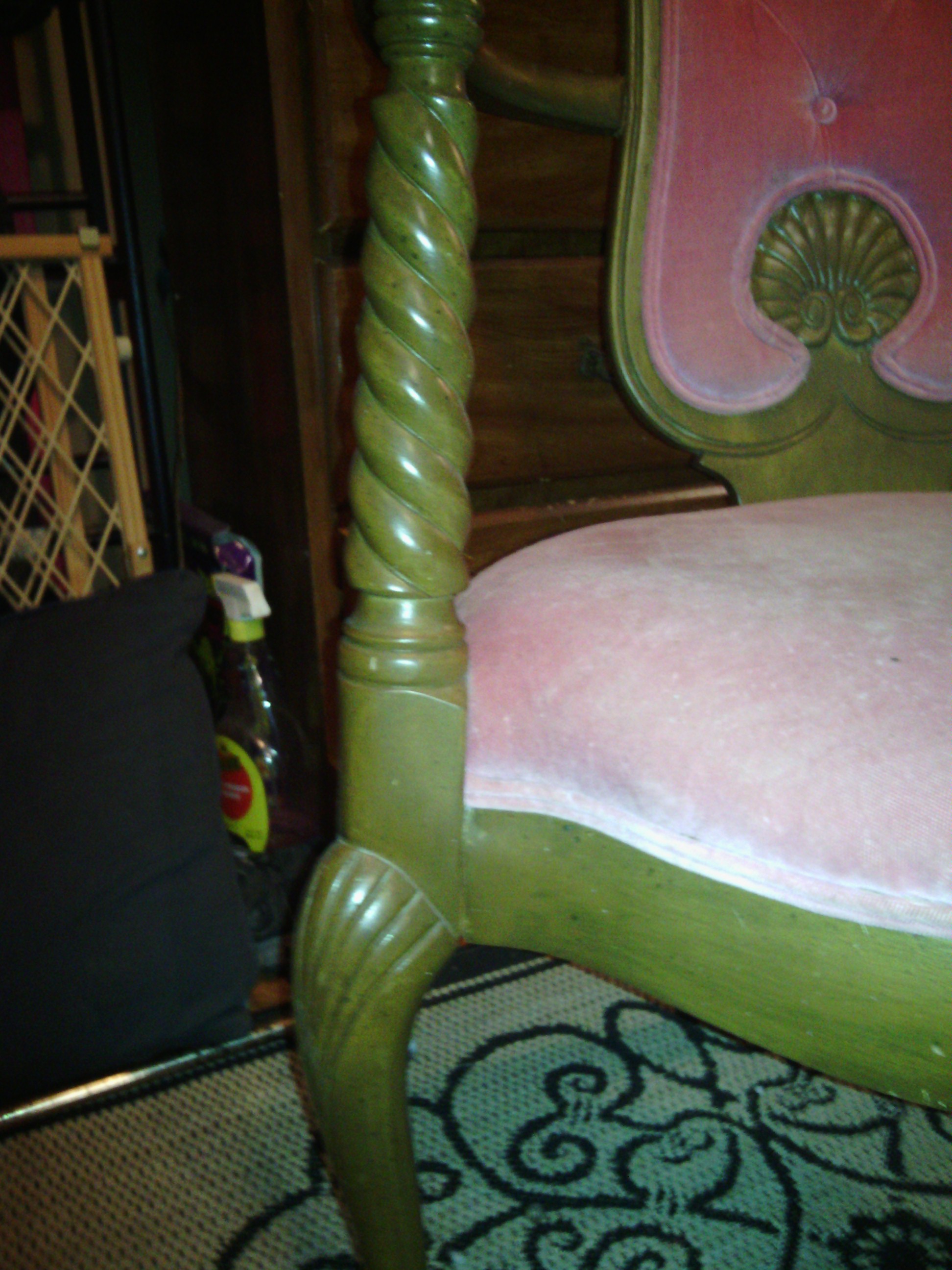 This is I think an early 1900's arm chair as for what i could find out. Never could find this particular chair though. The legs are placed oddly around the bottom of the chair and it has like bear claw legs and arms. its got a piece of suede material on it so not sure if its been redone or not, but its in excellent shape.thank you in advance for any help.