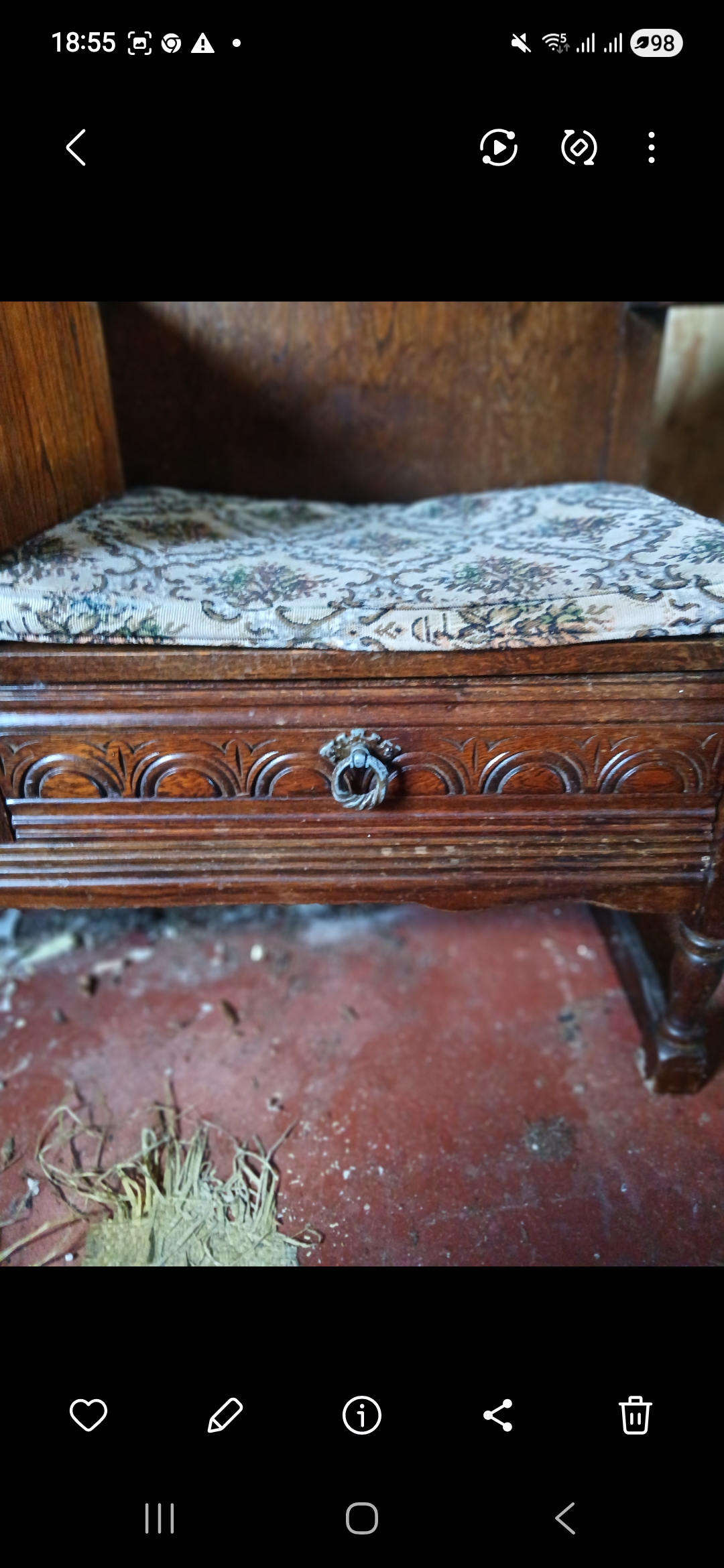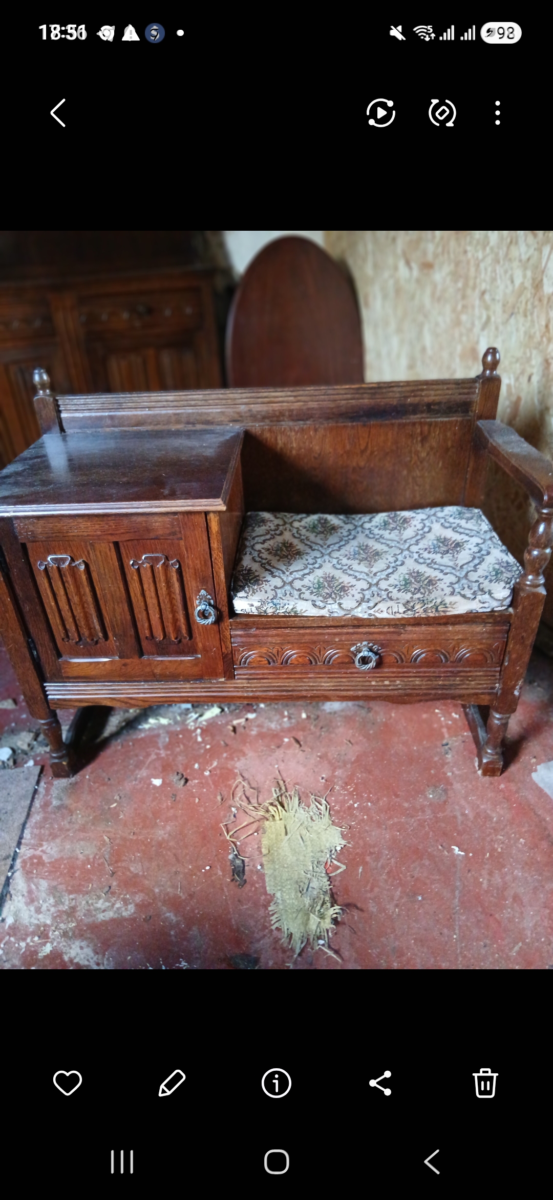 Antique Wooden Bench with Storage. Dating to c. 1880-1900. Materials: Wood, upholstery. Estimated value: $300 – $500. Condition: Very Good. Stable market for Victorian furniture with moderate demand.