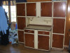 Couple of centuries old, complete hand made wooden antique cabinet piece with porcelain wheels and working skeleton key