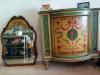 I am unable to find any markings on this piece, very old, detailed wood carvings around the mirror, has drawers on either sides aswell as glass doors. Carvings are of flowers, would love an estimate of what its worth, it ihas minor flaws, cracks and such but i do not want to tamper with it until i know what its worth, thank you!