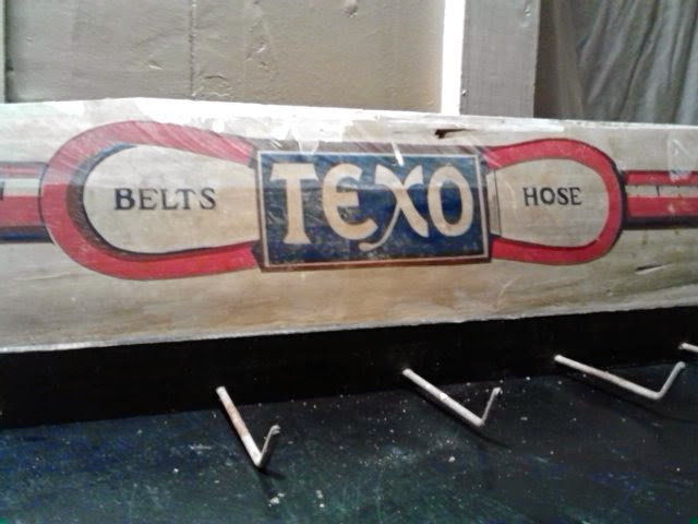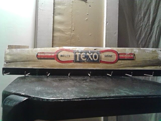 Looking for any information on this TEXO sign that anyone may have. Can find only one other sign online and it is totally different colors (bright orange). This sign was found in oklahoma. Verbage on signs says TEXO belts hoses. The only thing they really have in this town is an old feed store so that may be connected to that but could find no record of company. Approximately 18" wide and has hooks for hanging.