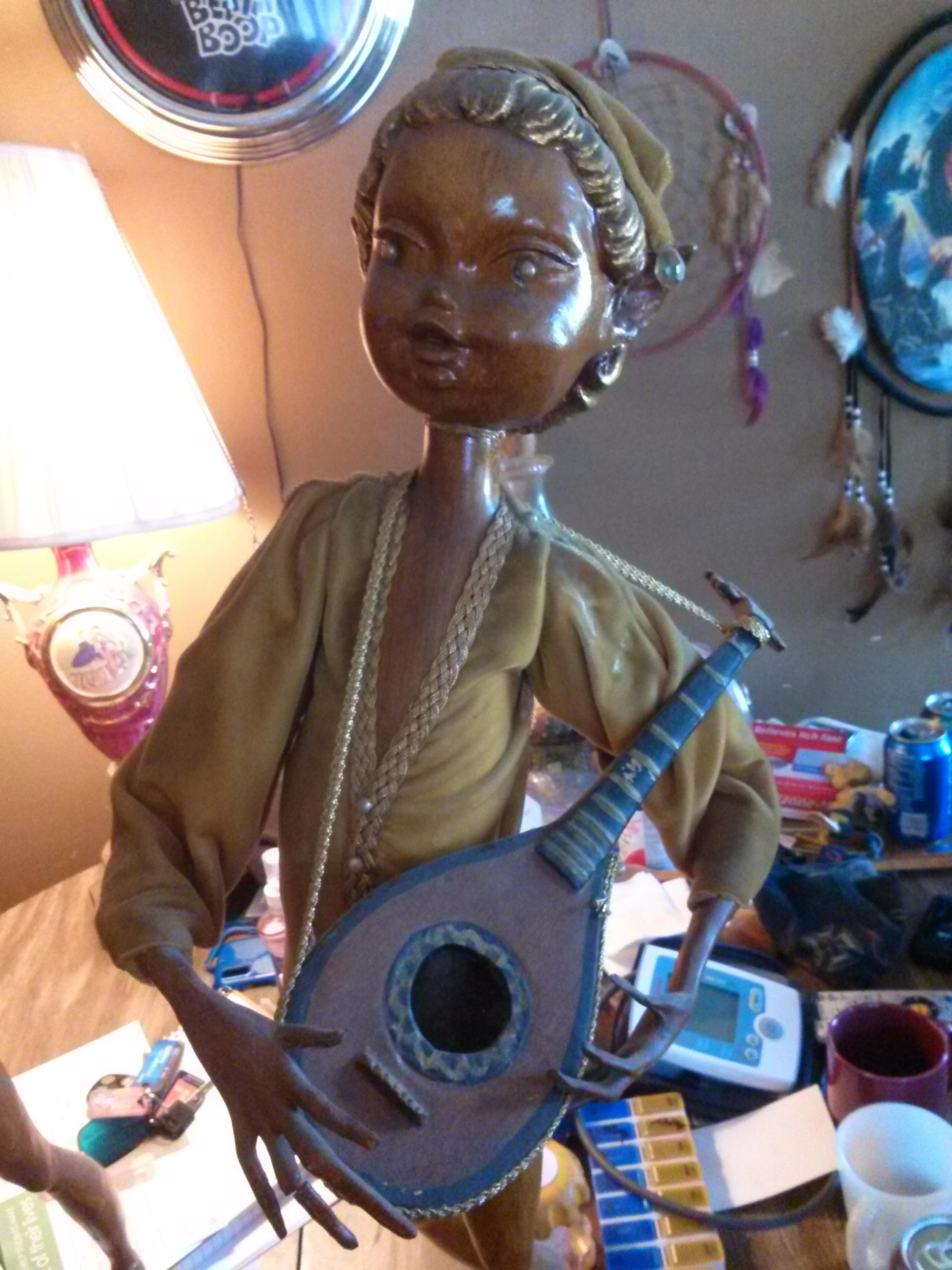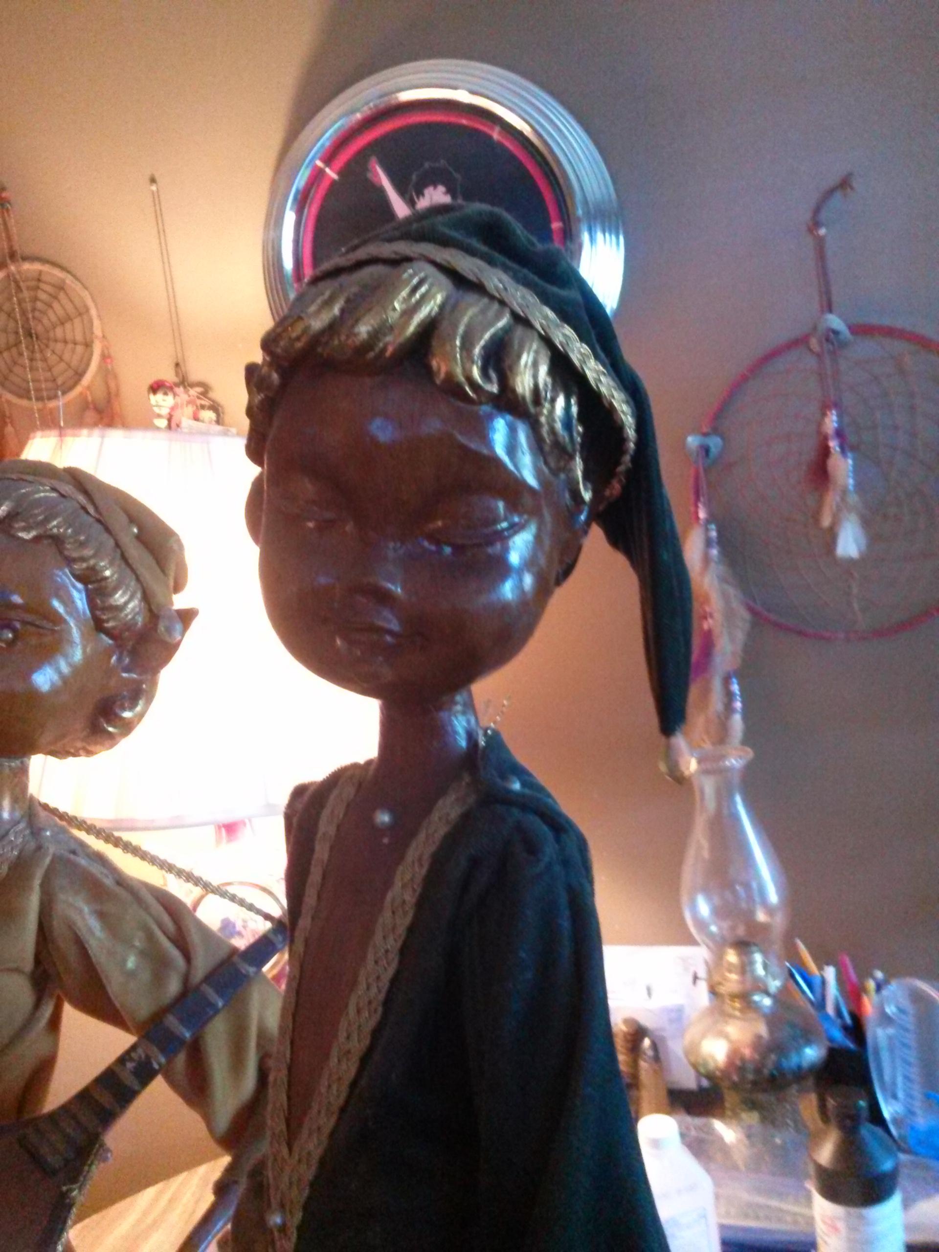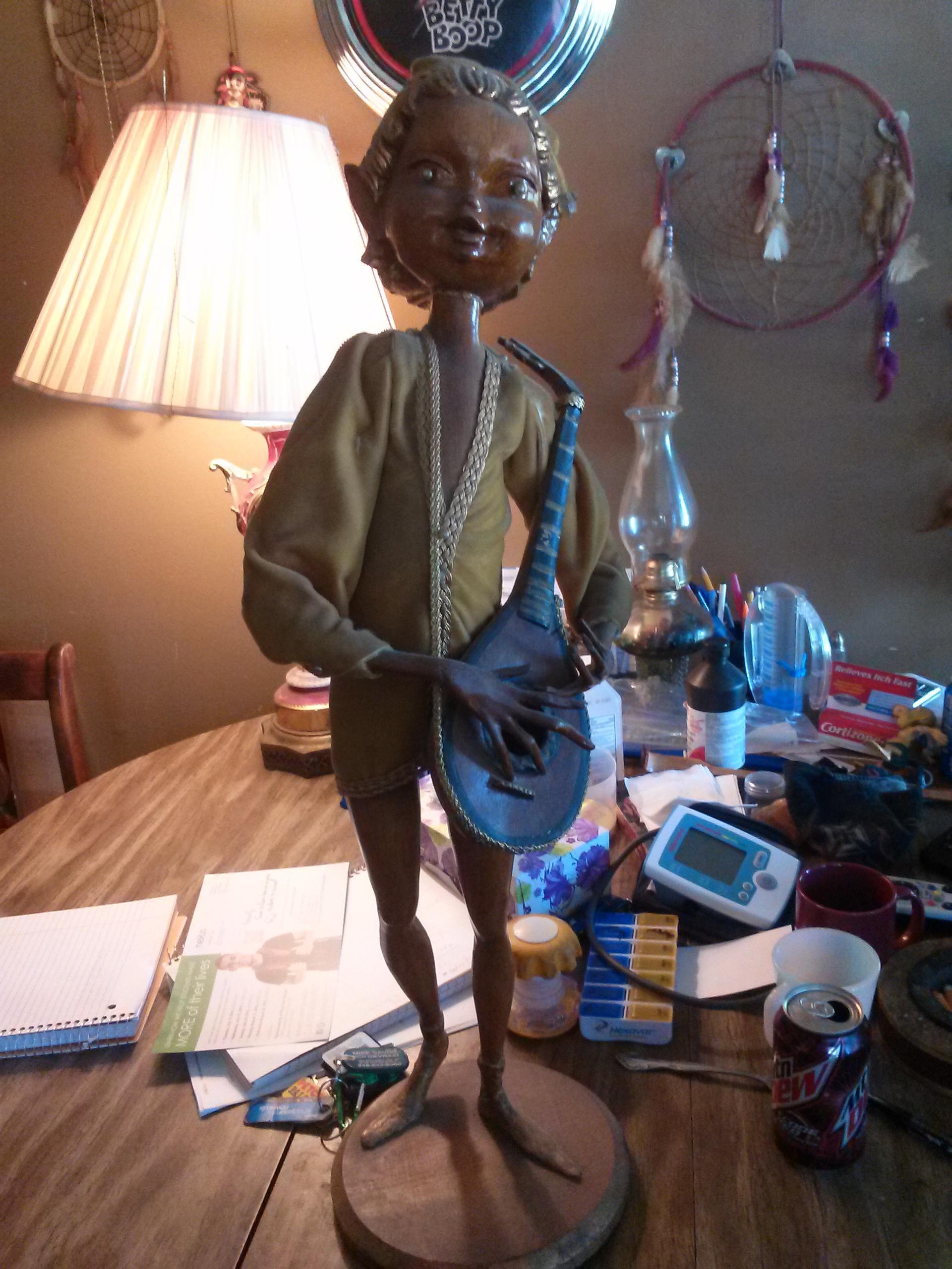 Description These were my great grandmothers, she was born in 1905 they are carved out of wood. They have no marking on them. There arms move and they have elf ears.