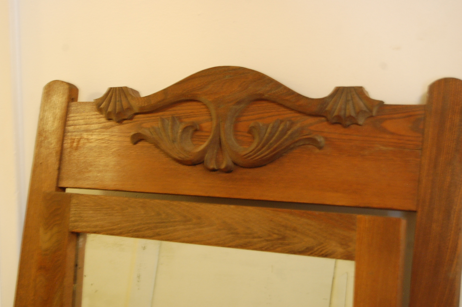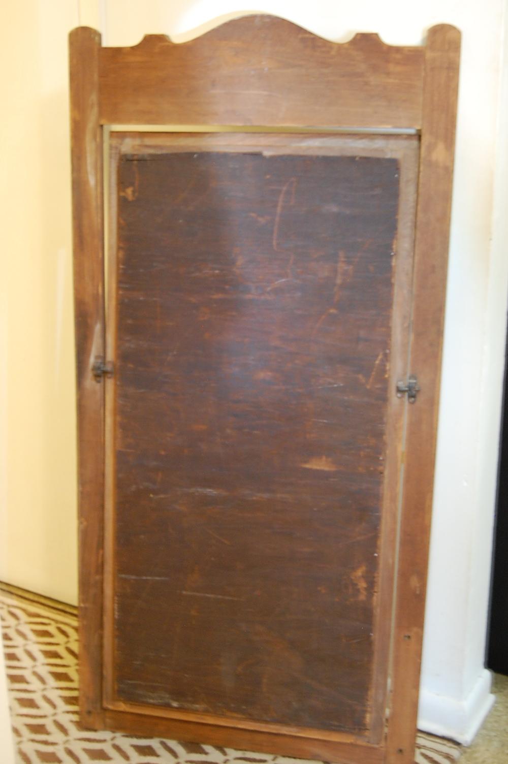 wooden framed mirror toung and grove plain wood tacked on back over glass real old style beveled edge around mirror
