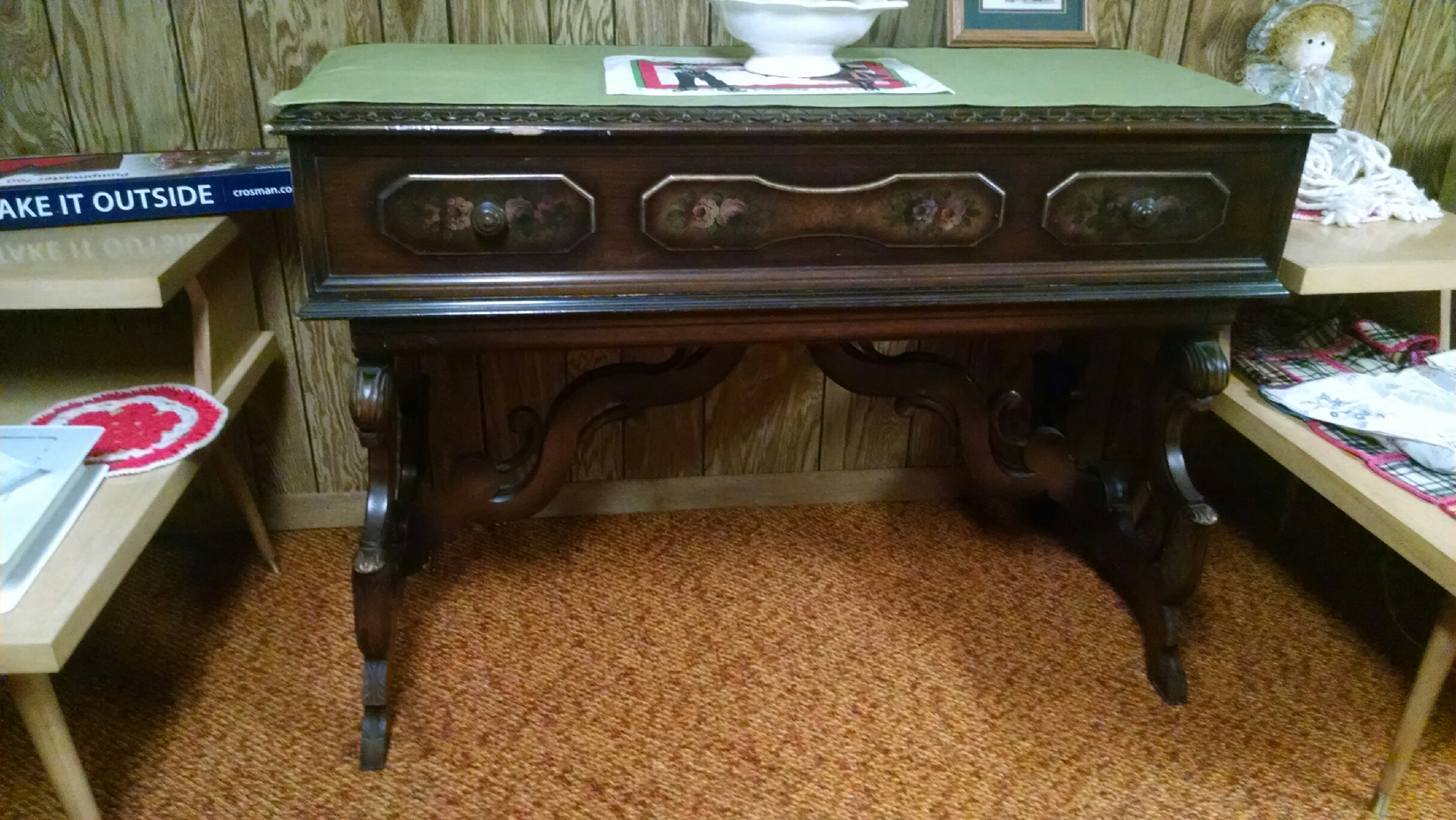 the top flips up but both hinges are mising. it is not very sturdy. there re no marking on it to tell who manufactured it. Just wondering what I should put for a price on it.