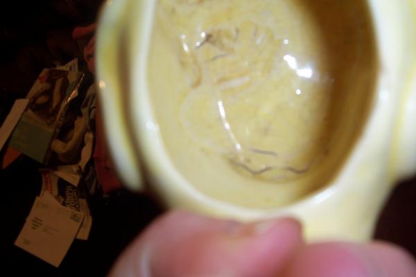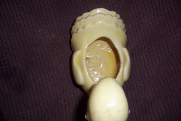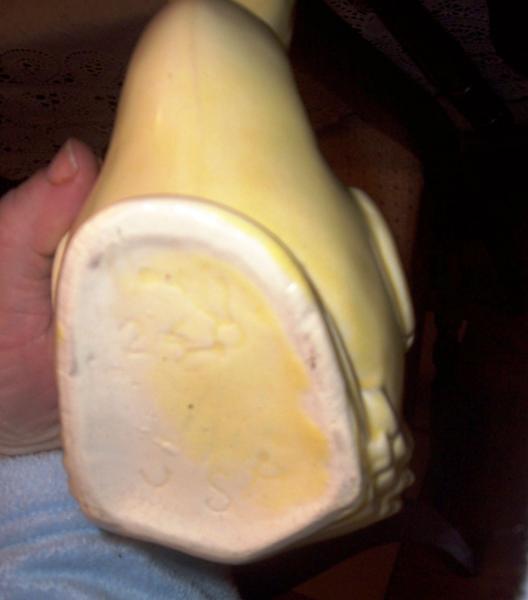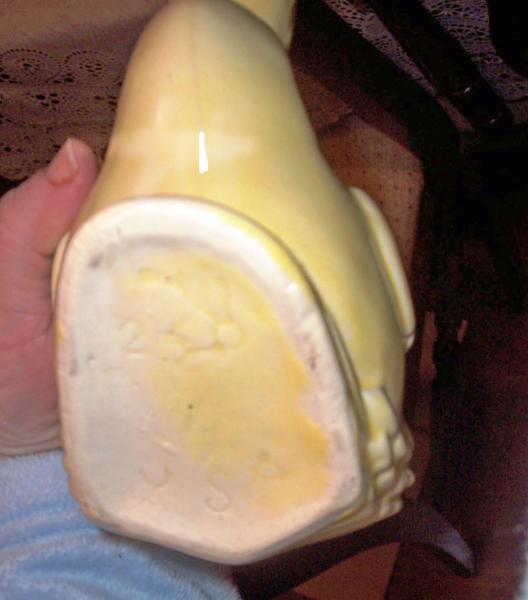 I am posting of what I think to be a turkey planter or vase, I'm not really sure because of the beak. The beak and feat are hand painted in red.