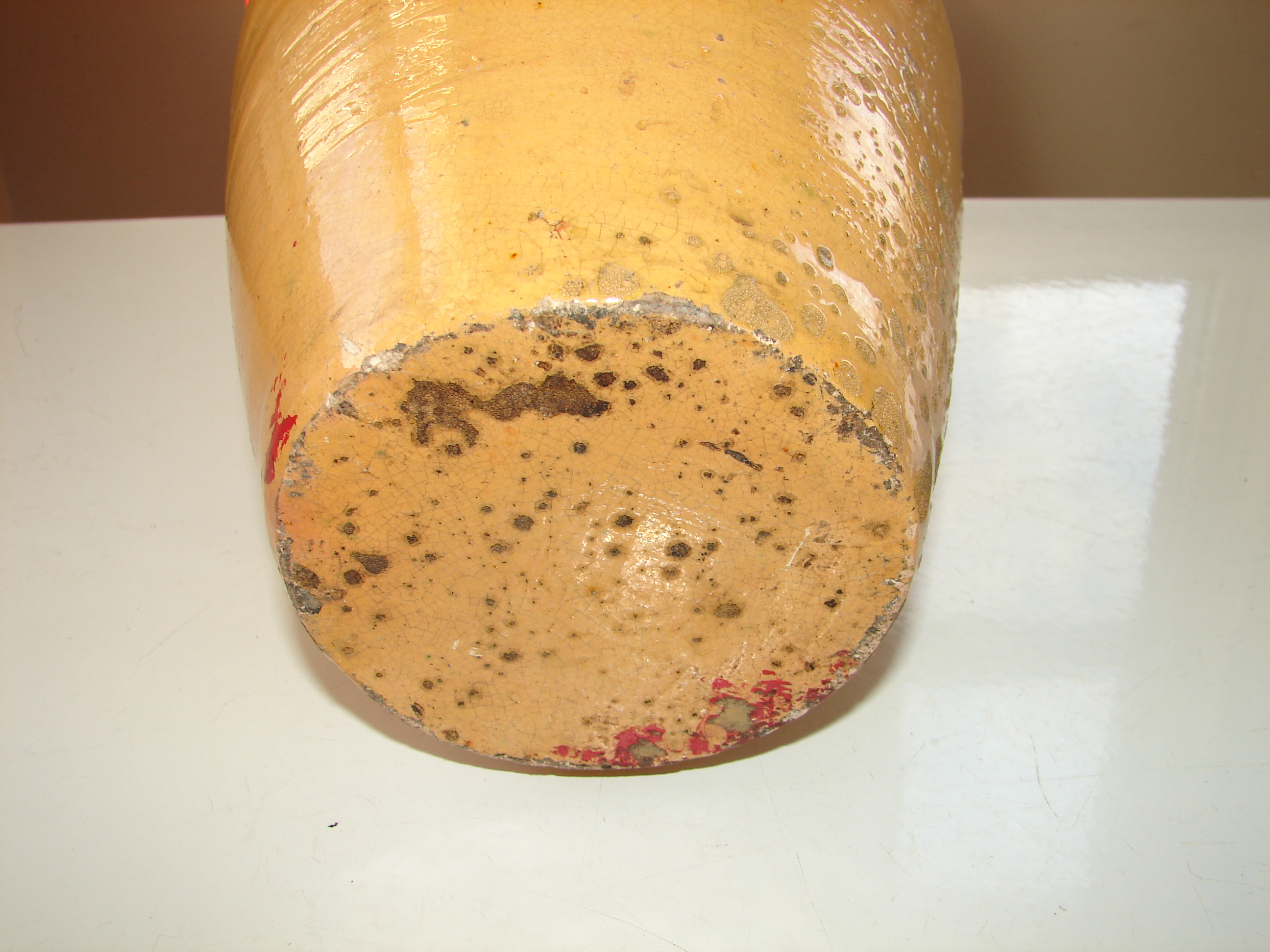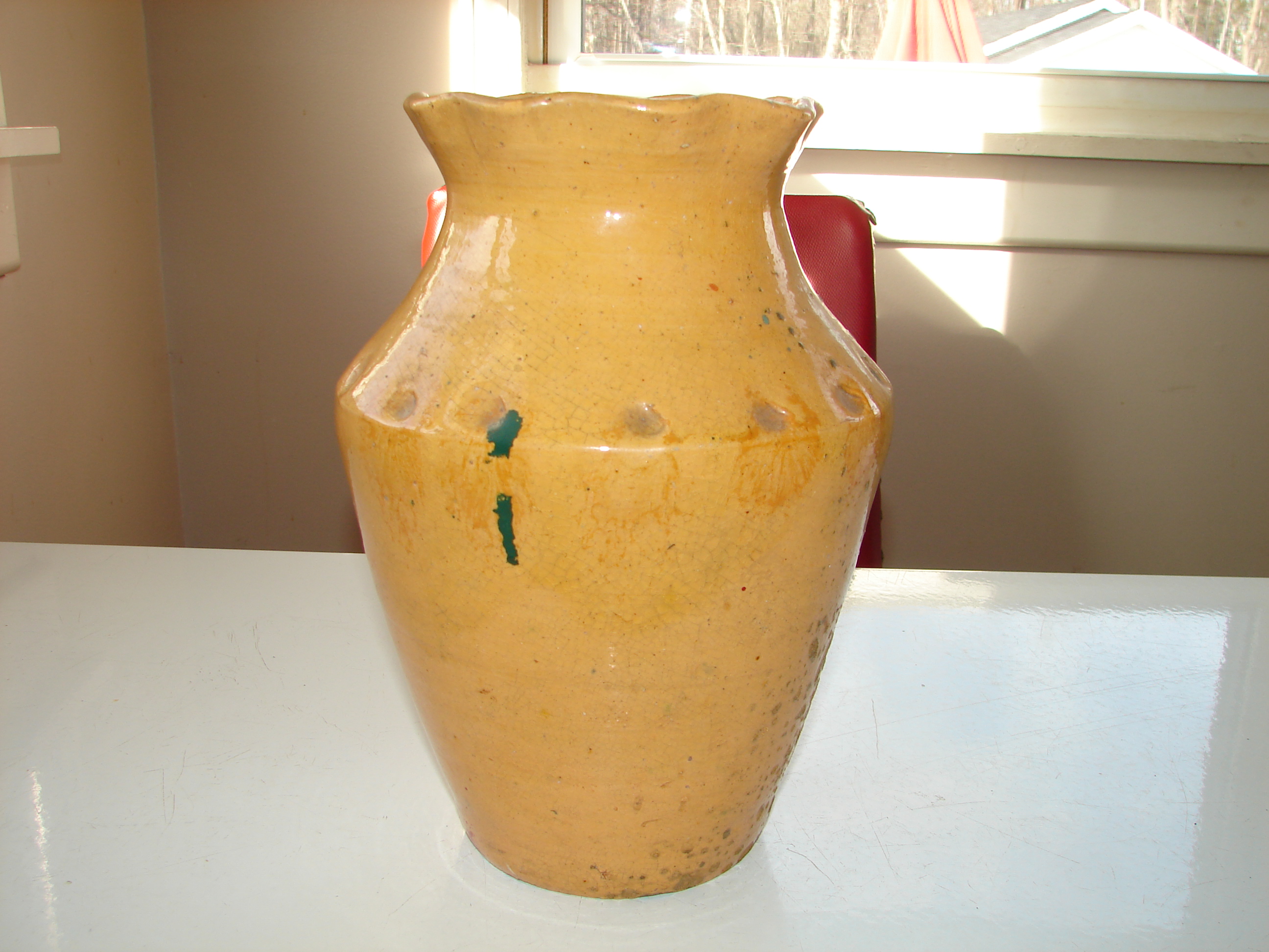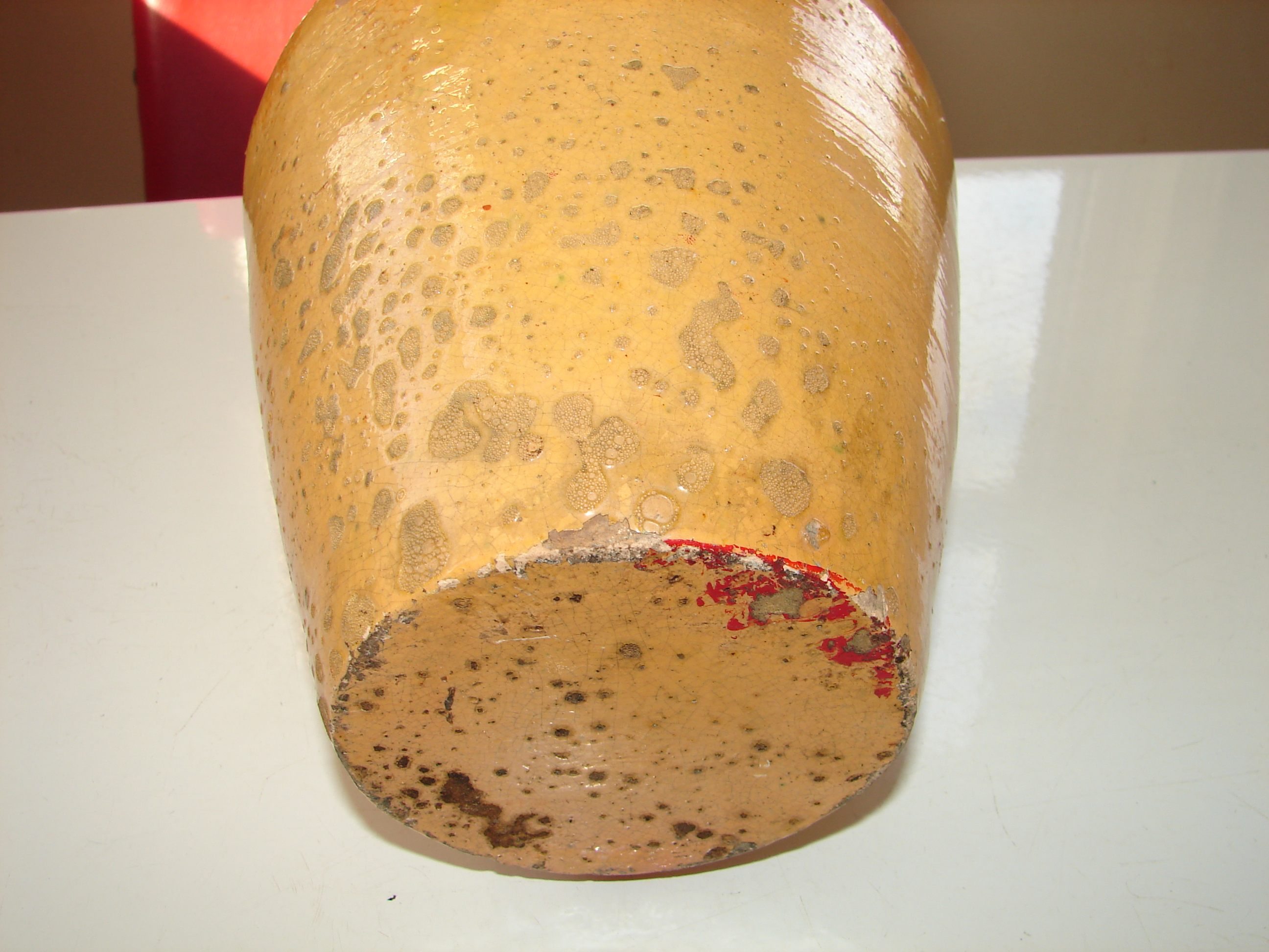 Vintage pottery fluted vase Unknown maker, it has some crazing and paint coming off. It is a very old vase I think it is cement or sandy substance. It is approximately 10" tall the widest part around the middle is 22". It has no markings, please review all photo's. It does need cleaning but will leave that to you.