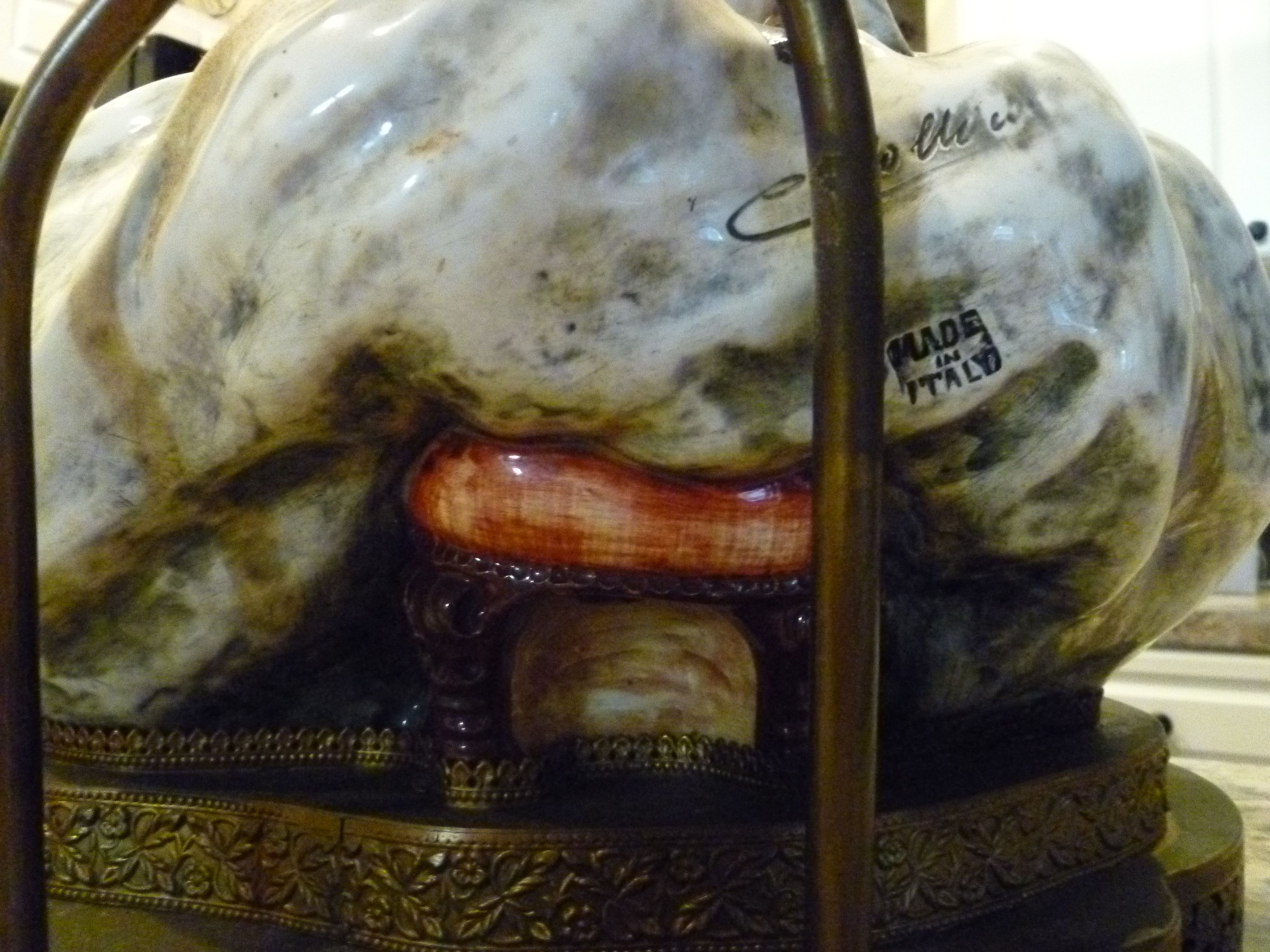 Inherited an Italian Porcelain lamp. Know it was made in Italy and has artist markings. I have several photos. The bottom appears to be cloth covered and is old and stained but intact. I would guess the cord has been replaced. The light works. It measures: