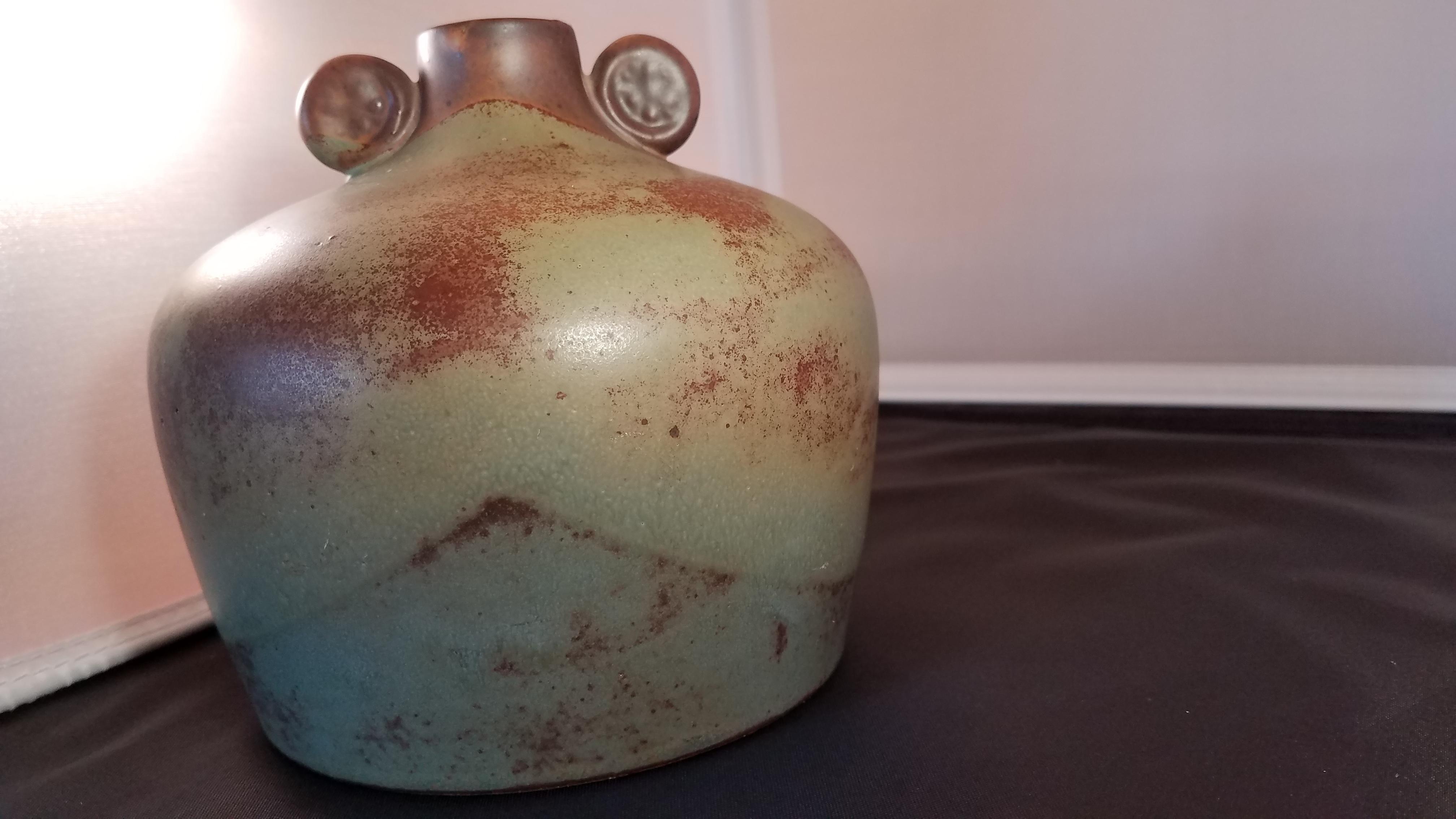 Antique? Jug/Pottery - looks like Asian of some sort, handles have patterns (floral maybe) which are quite worn.