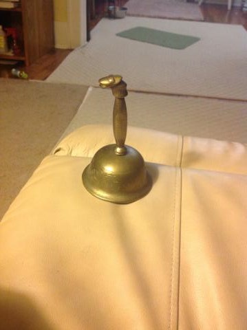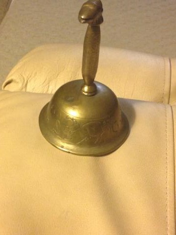 Approximately 5 inches tall and weighs less than 1 pound. "MADE IN CHINA" appears to be hand chiseled/cut in the metal-- not machine stamped. Two dragons are etched on bell and entire handle is dragon's neck and head. Found this in the late 1960's.