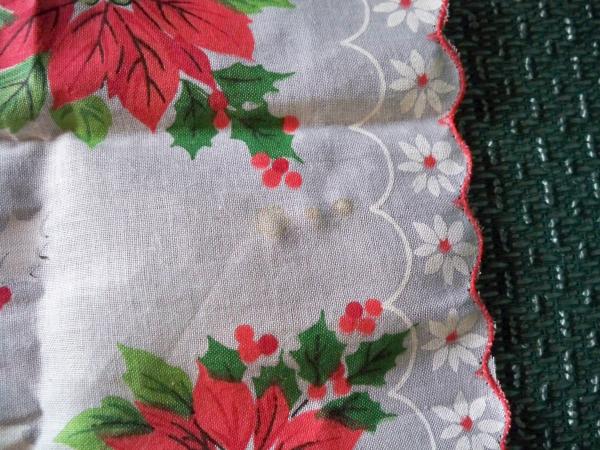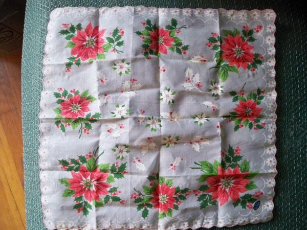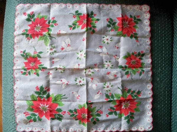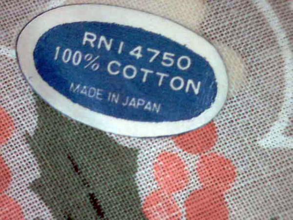 I found this hanker-chief with some other antiques I have. I found it folded up inside an old flapper purse. From what I can tell it is in great shape. there are three separate stains on the hanker-chief (which are in photos). I would think the stains can be removed, but I'm not sure what would be the best way to clean them.(should i Iron it?) on one side there is a sticker that says "RNI4750,100% cotton,Made in Japan". and on the other side there is a sticker that says "Hand Painted". I do not know what the value of the hanker-chief is. But I would like to sell it. as far as dating, I would guess around 1950's.