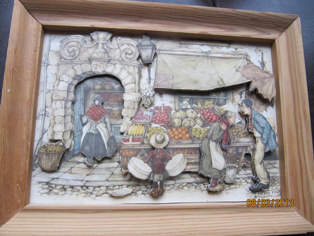 Anton Pieck 3D Art, Fruit Stand/Farmers Market 1966, Donald Art Company (DAC),N.Y., Printed in Holland
