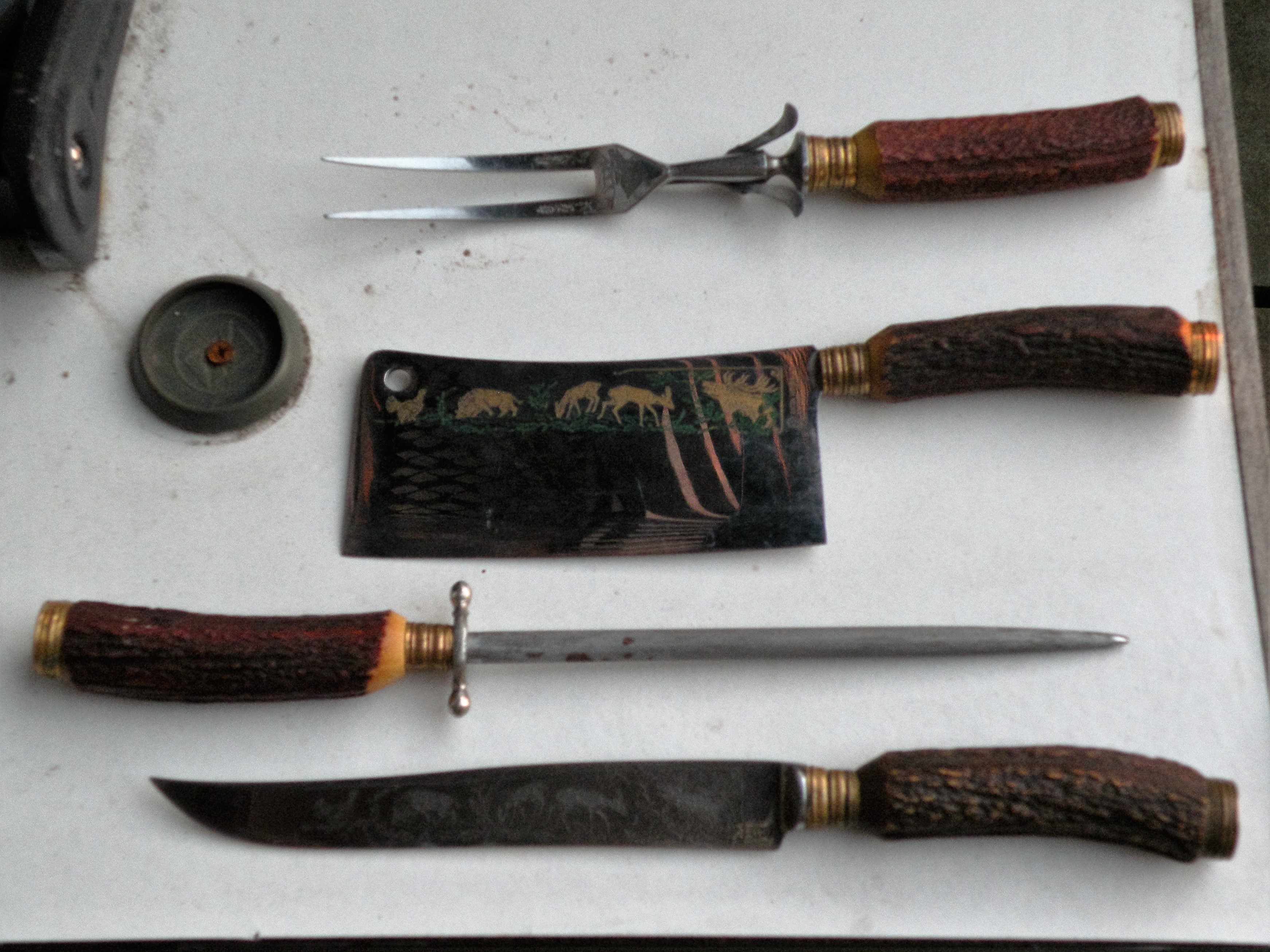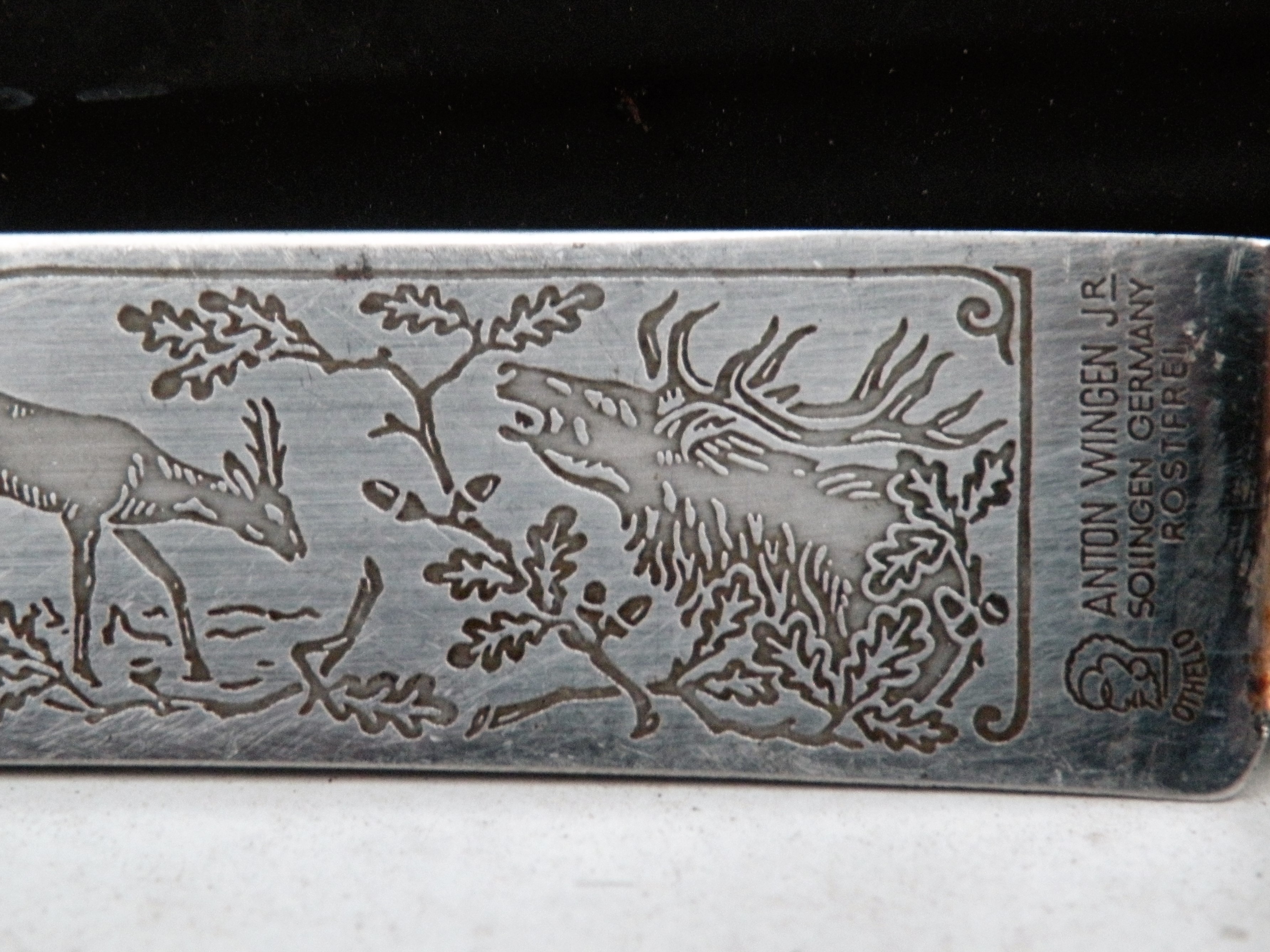 I recently purchased an Othello Anton Wingen Jr Carving Knife, Fork, Knife Sharpener, and Cleaver. The blades are in used condtion but not damaged and the stag handles are in great shape, The person I bought it from told me she thinks it came from her grandfather during WW2.