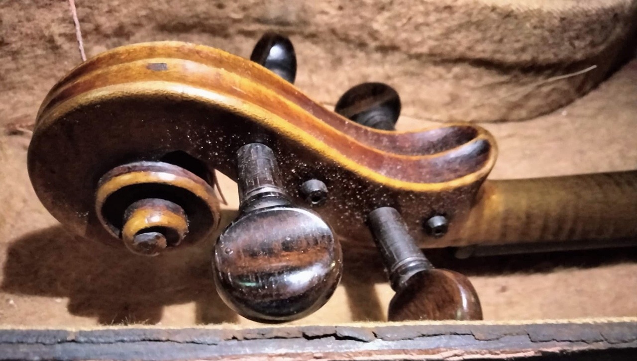 Antonius Stradivarius student violin, has some sort of drawing on the inside of the violin