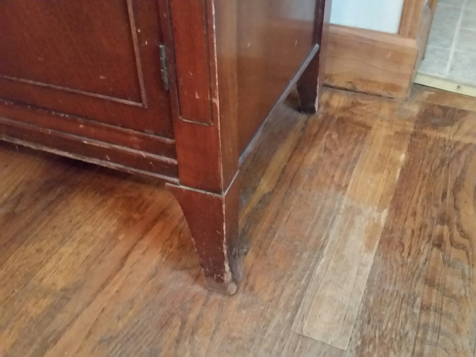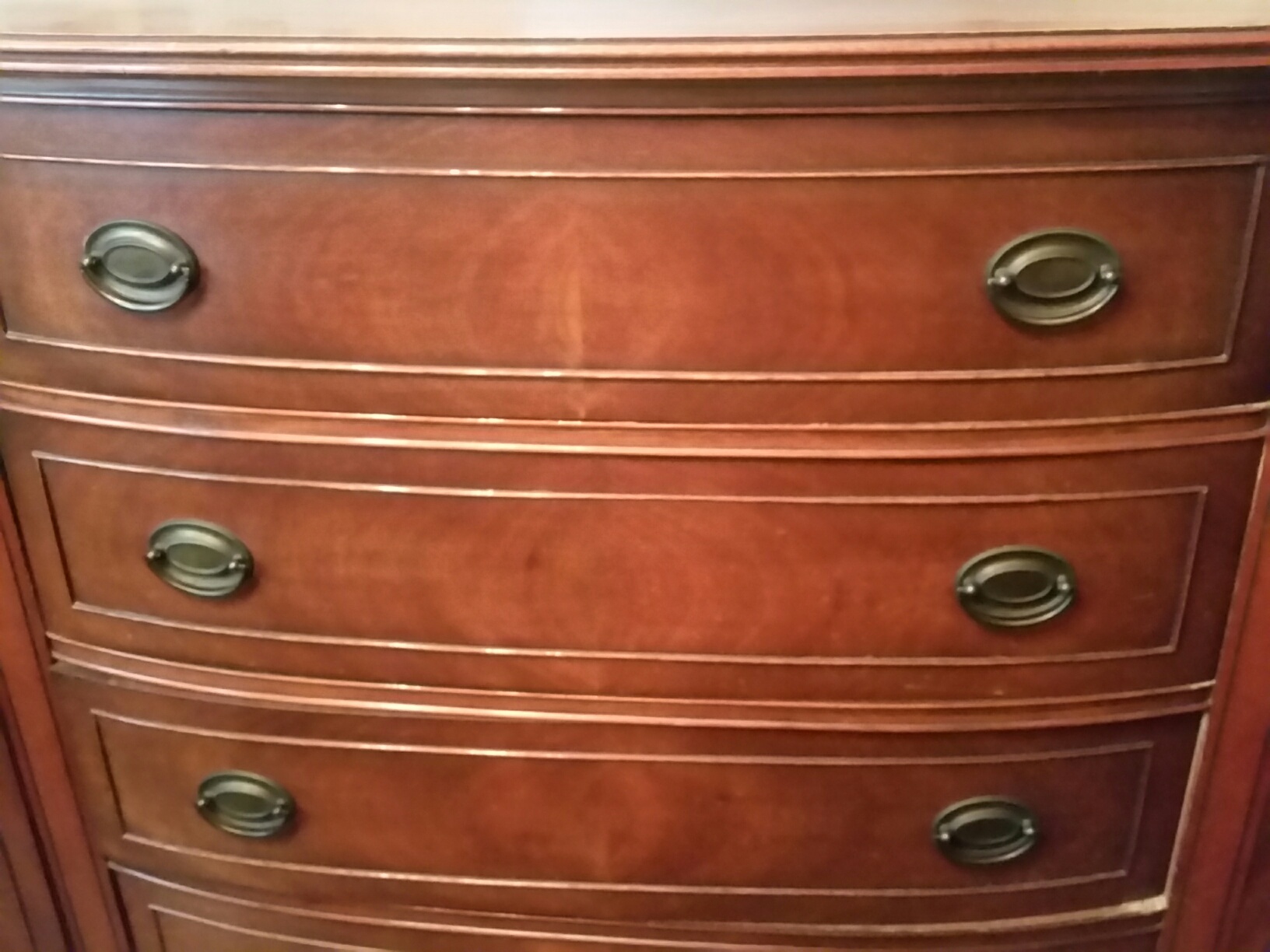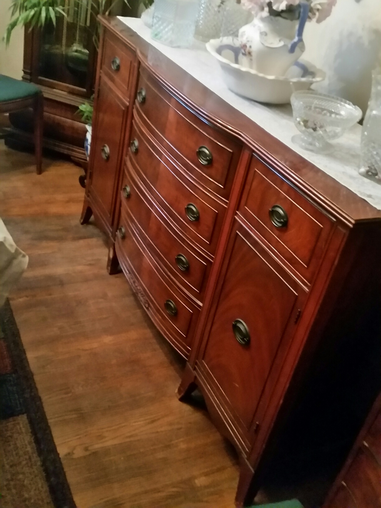 The 2 top drawers of the buffet are felt lined. The pieces are in good condition with some wear on the legs.
