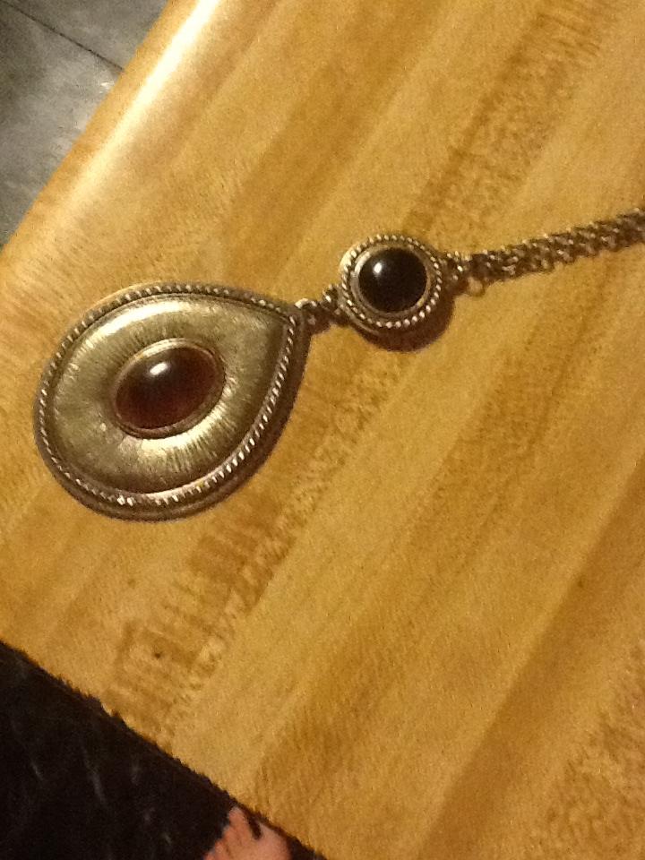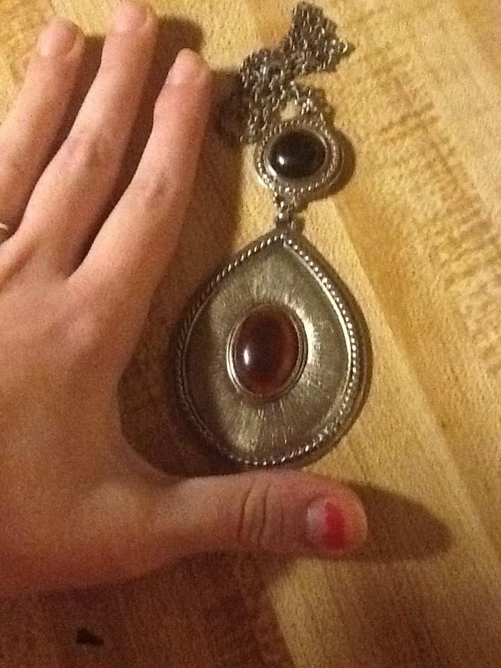 My grandmother found this necklace buried in a basement inside of a box over forty years ago. I have absolutely no information on this necklace and it is not signed. Please help me find something out about this antique ! You can see throught both stones and the darker stone is a dark purplish color.