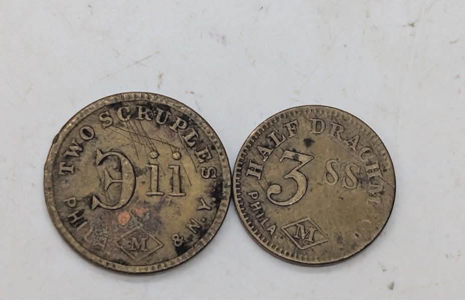 Historical Context: These weights were likely produced in the 19th century, a period when apothecary practices were common in medicine. The use of weights like these was essential for accurately measuring ingredients for prescriptions. The markings suggest they were made in Philadelphia, a hub for early American commerce and trade.