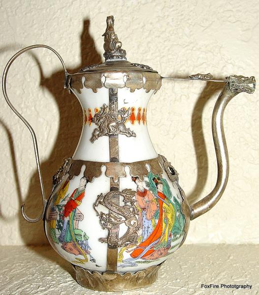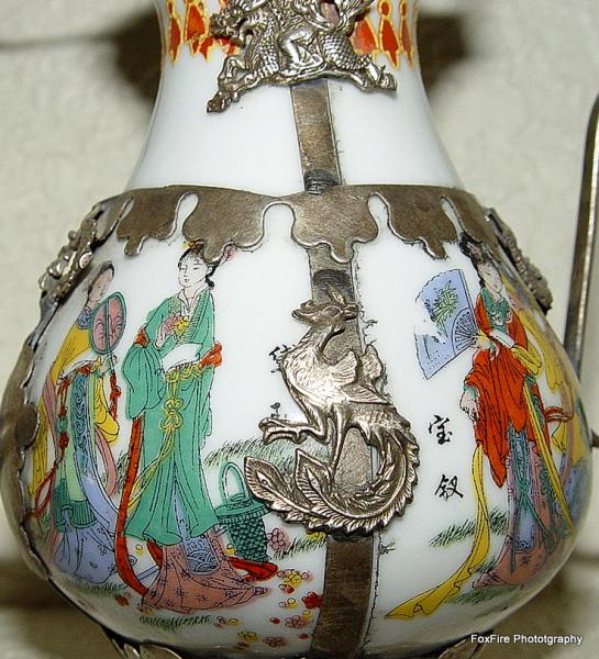 Porcelain, Brass/Copper/Silver (not really sure)