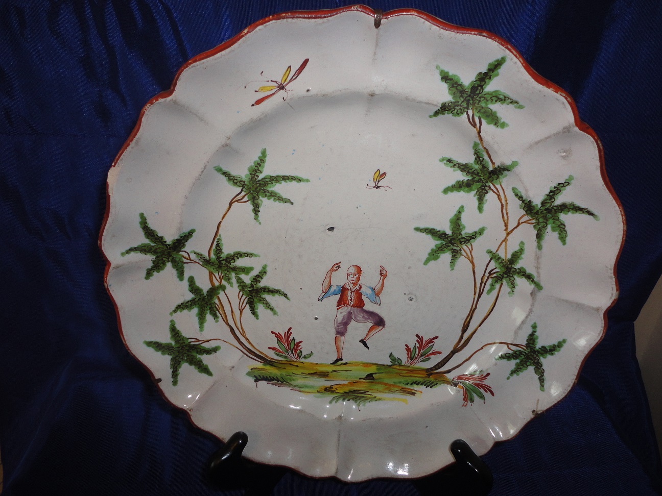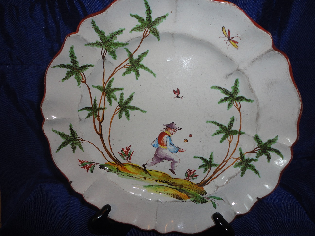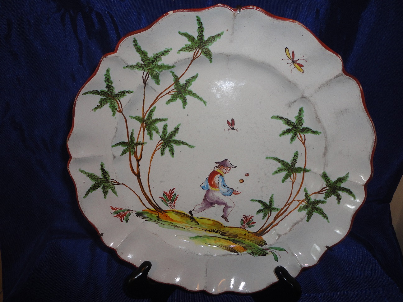 I've searched photos and possible makers for these plates (they are Jules Viellard-esque).  Found them in a thrift store.  They seem old, due to the manufacturing defects (pock marks, glaze and paint shortages).  They appear handpainted.  Would appreciate knowing the maker, dates of manufacture and value (if possible).  THANK YOU!!