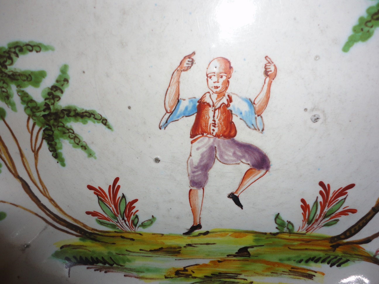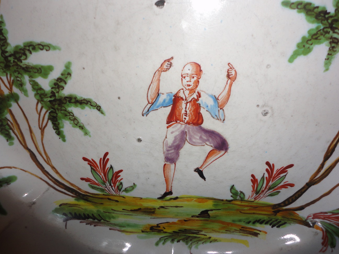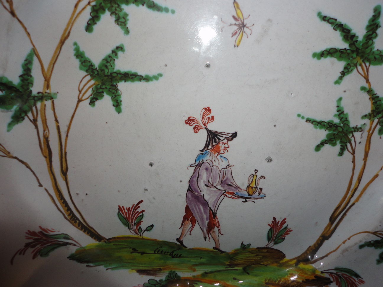I've searched photos and possible makers for these plates (they are Jules Viellard-esque).  Found them in a thrift store.  They seem old, due to the manufacturing defects (pock marks, glaze and paint shortages).  They appear handpainted.  Would appreciate knowing the maker, dates of manufacture and value (if possible).  THANK YOU!!