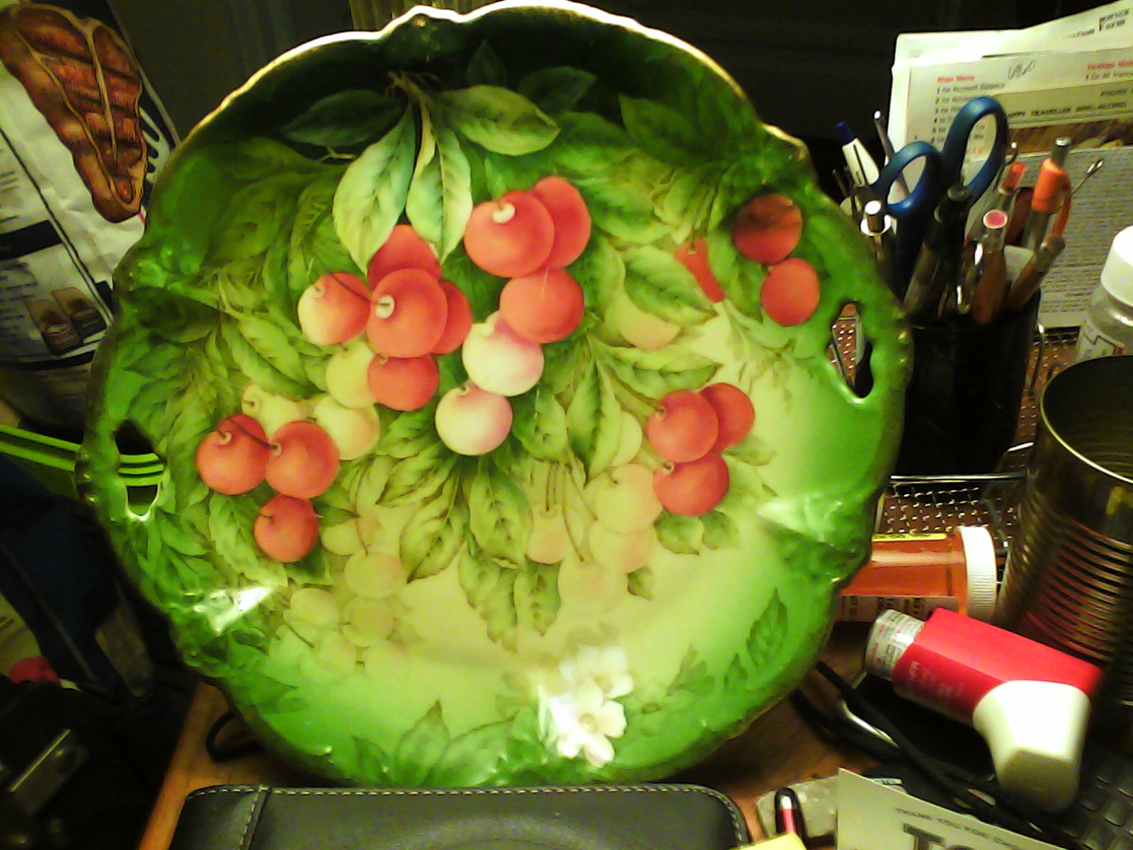 plate with apricots on front markedbavaria and has a number on it