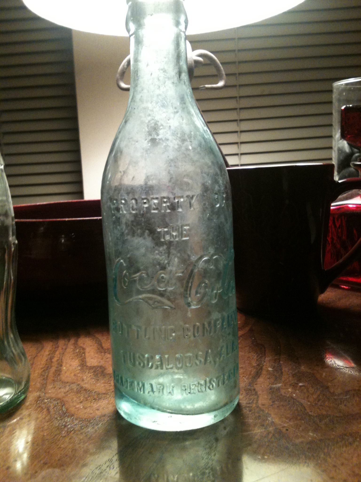 This is a straight sided, aqua glass Coca-Cola bottle. Estimated date is 1900-1915, bottled in Tuscaloosa, AL