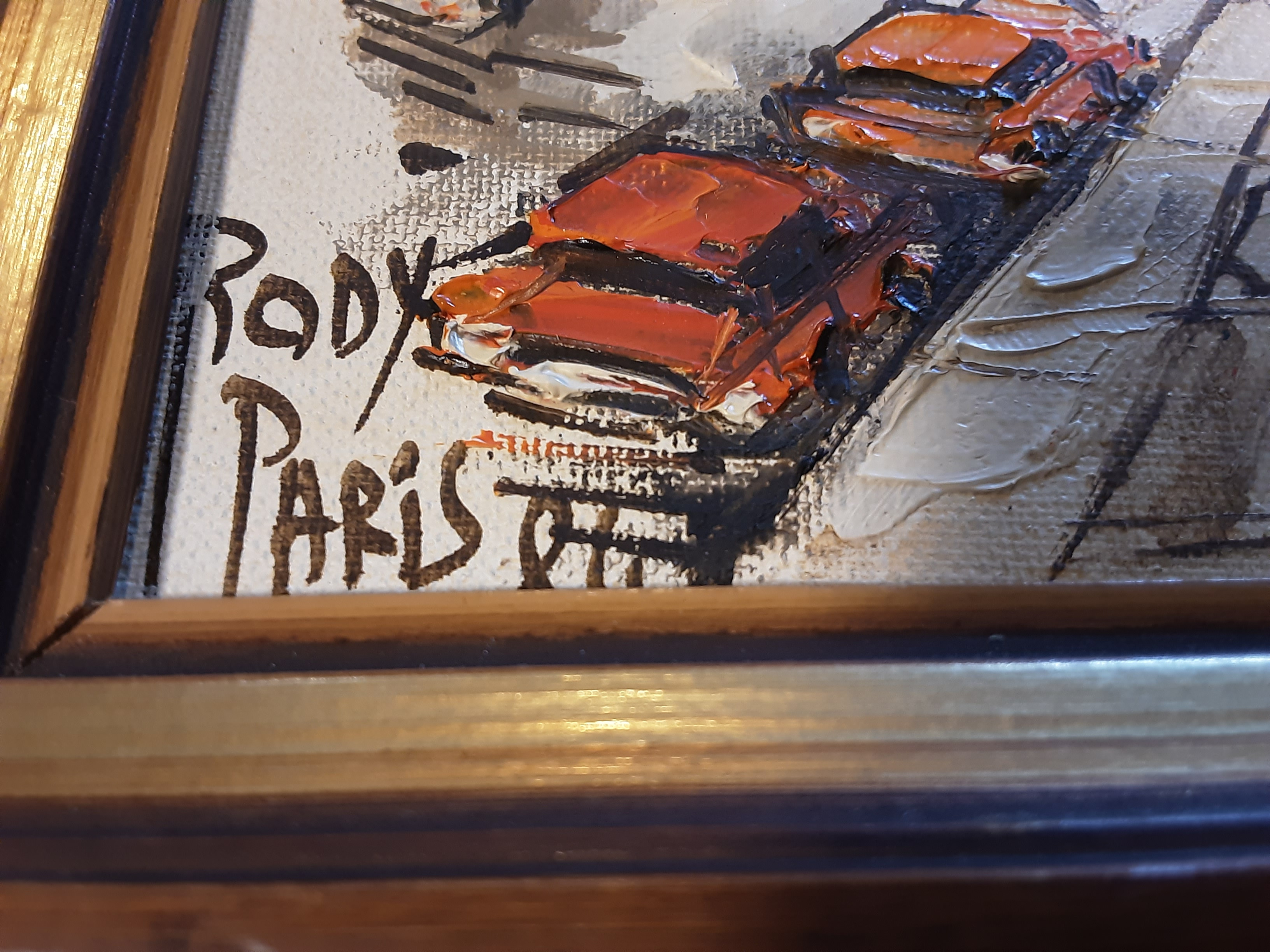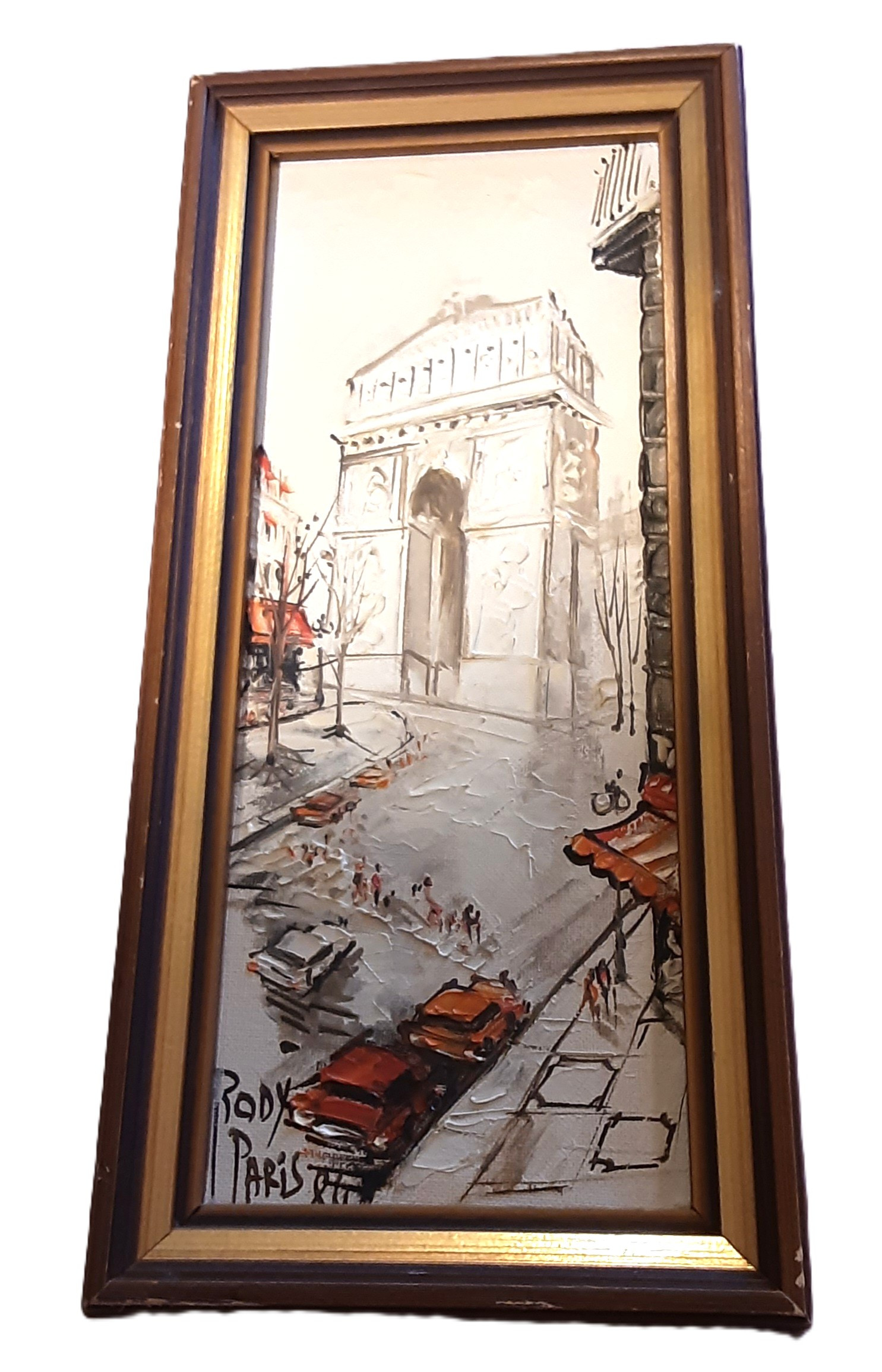 There is a very similar painting listed on ebay, from 83: https://www.ebay.com/itm/156620706621?_skw=Rody+Paris+Arc+de+Triumph&itmmeta=01JSCZRFXH676Z81XG88WX9W05&hash=item247752533d:g:f0EAAOSwUIRnetr5&itmprp=enc%3AAQAKAAAA0FkggFvd1GGDu0w3yXCmi1fsSAz0cvMbdQ0HZ%2B7G9CCpWcP0aIdxPsAnZb77jF2%2B65R3RlV7r0FuL88UJD5Tbgi6uWl4m2j0GgczlaQbjYdc0cnVWokwHPe%2Bcqn%2Fd7IzgOBuGblbVXs6m%2BoI95B9TWl0sakhgQ0xpKgQj2GjHRso1CosOLnRl0xG0N0T9QJWe0eyCEUpmg6fxHRj4953QFqoC5289NRVpRPIy21xLXje%2FcFaRCHZF2MM%2FJ6UsJ20m9kUZEXbnPbmgC8MFjryl04%3D%7Ctkp%3ABk9SR_L-4Z_LZQ