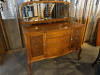arched top armiore, matching burl vaneer panels, dove tail constructed drawers, there is a matching dressing table with a very tall mirror, and a matching bed frame, headboard and footboard.