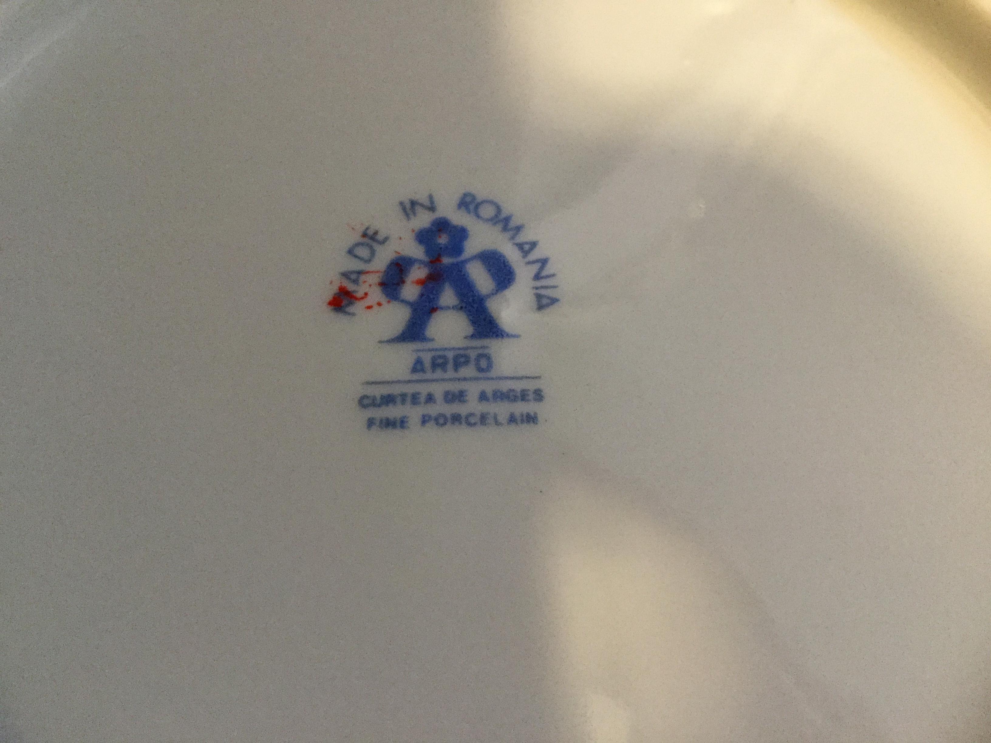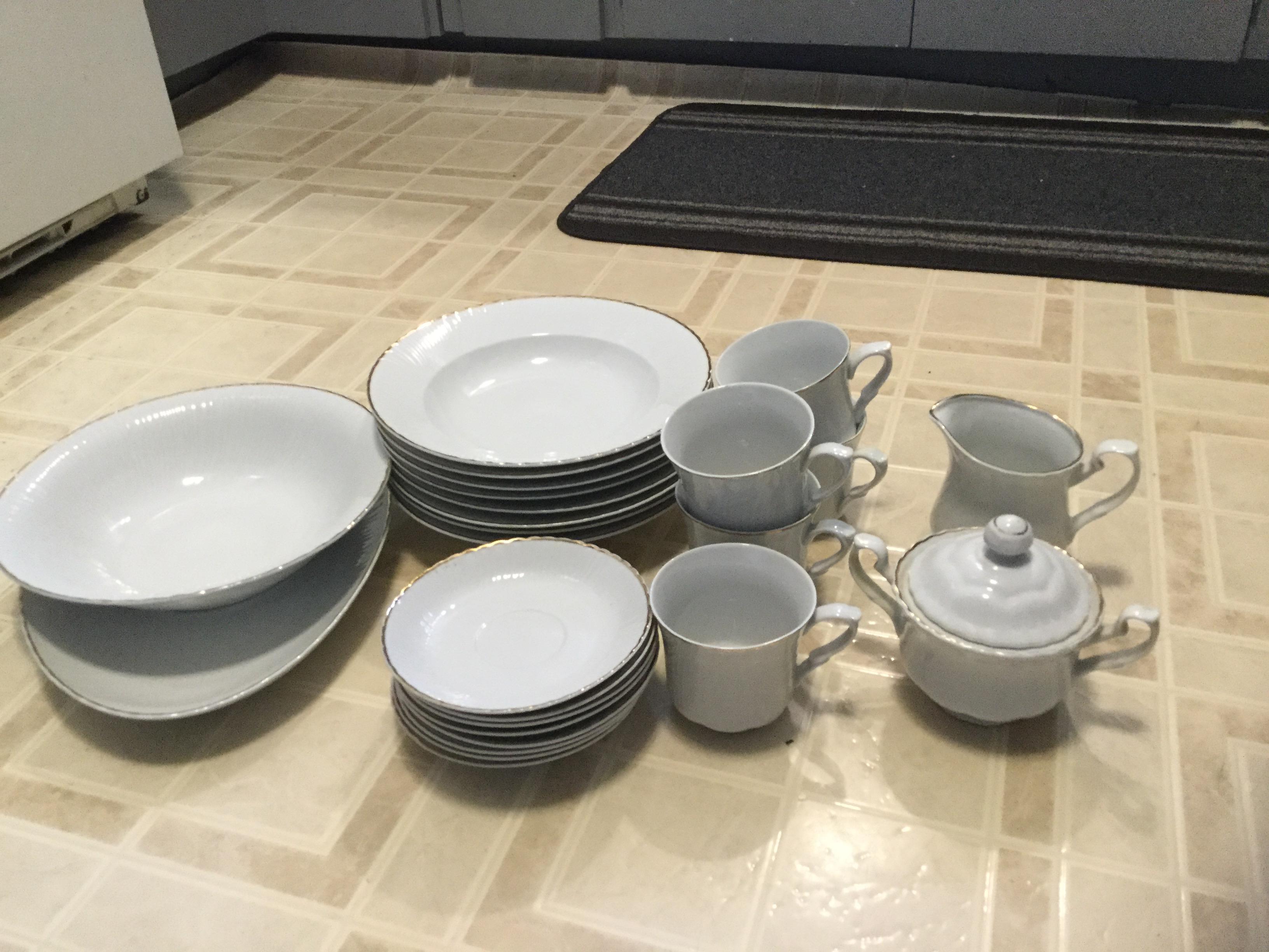Only have one dinner plate. Have cups, saucers, soup bowls, serving plate, serving bowl, sugar and creamer set