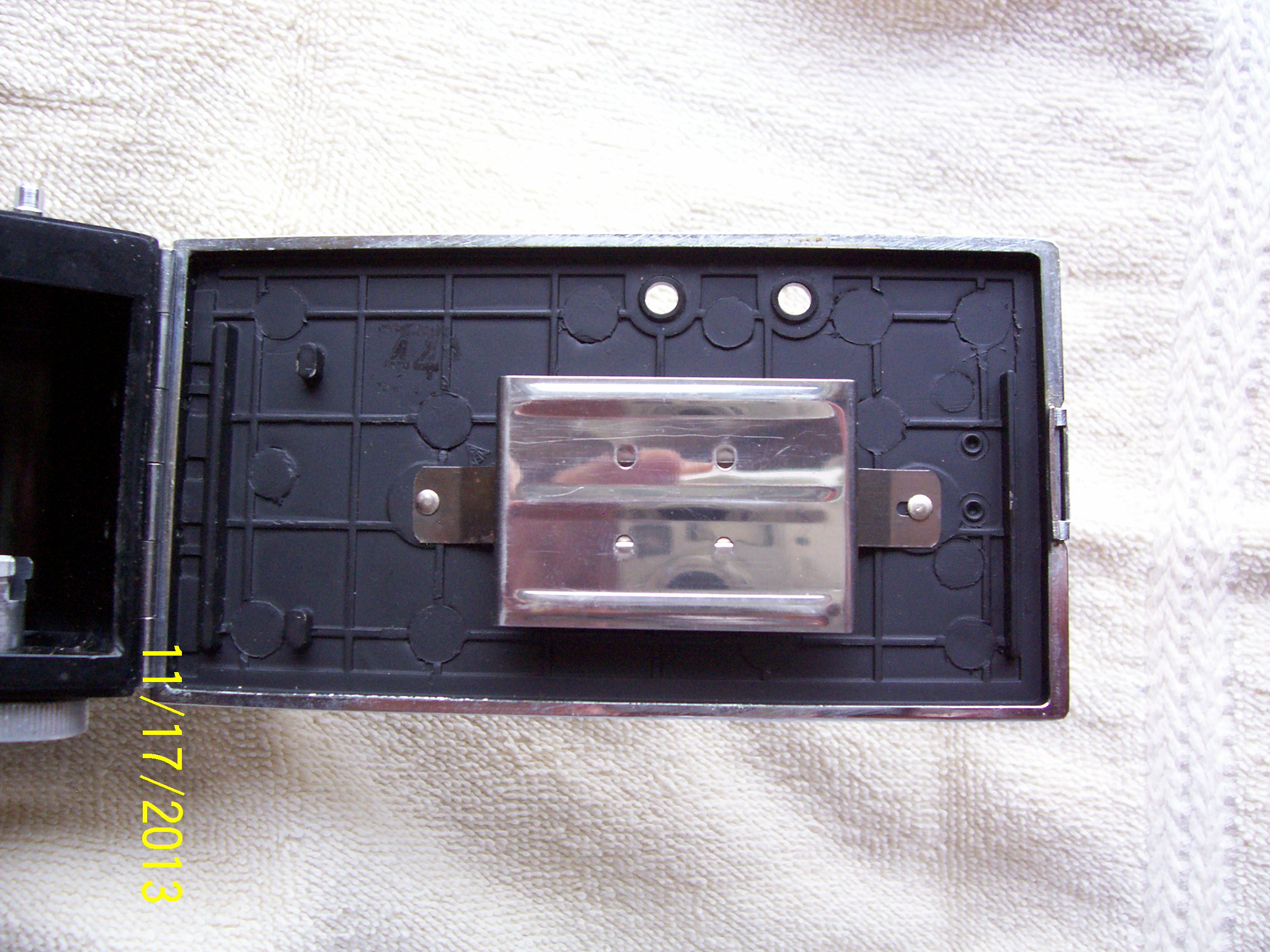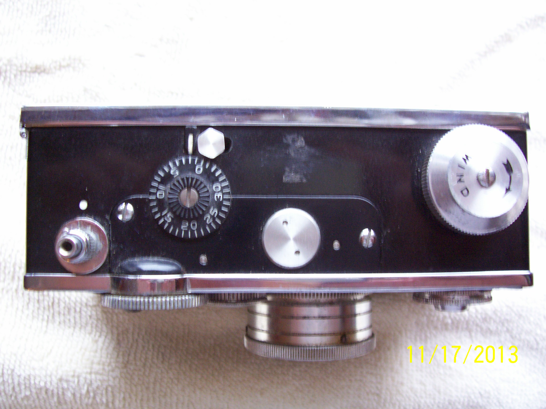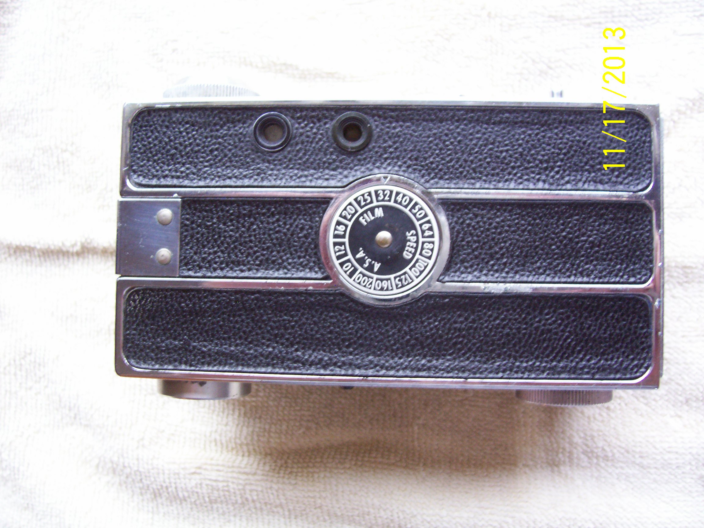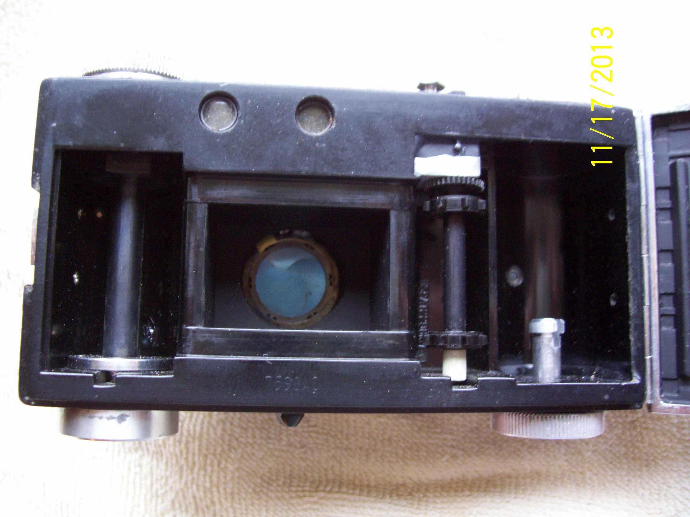 Argus 35mm camera - engraved # on camera chasis is 759840. #'s inside of camera body are uspat 2298107 & uspat 2298787. # ink stamped on inside of door is 44. Was not used much. I'de say it's in good condition. Haven't tried it. The case is in decent condition also. The bottom piece comes out because the stitching that holds it to the sides has rotted. It's made out of leather. Otherwise there are no rips, holes or stains. Needs some cleaning up.