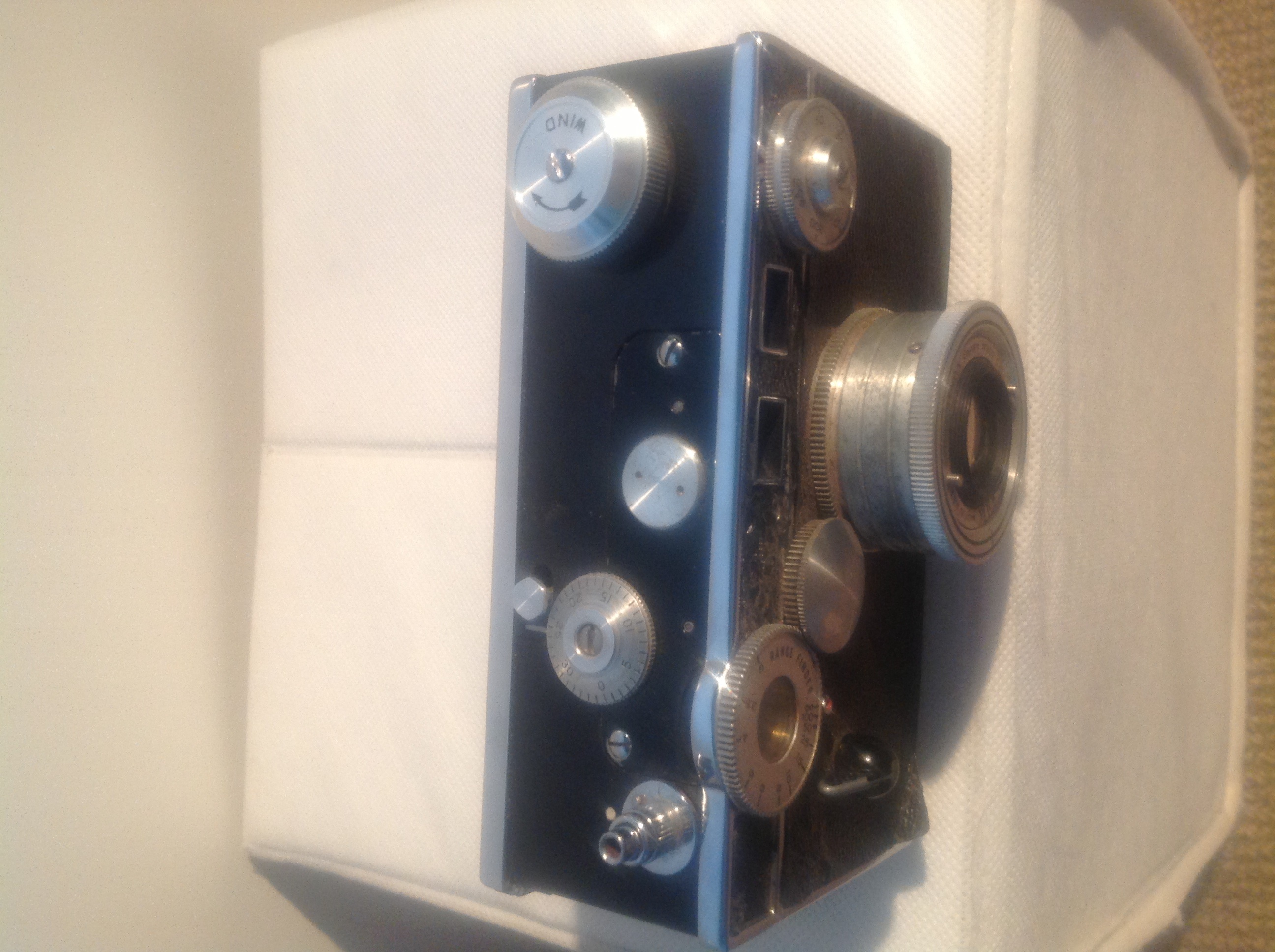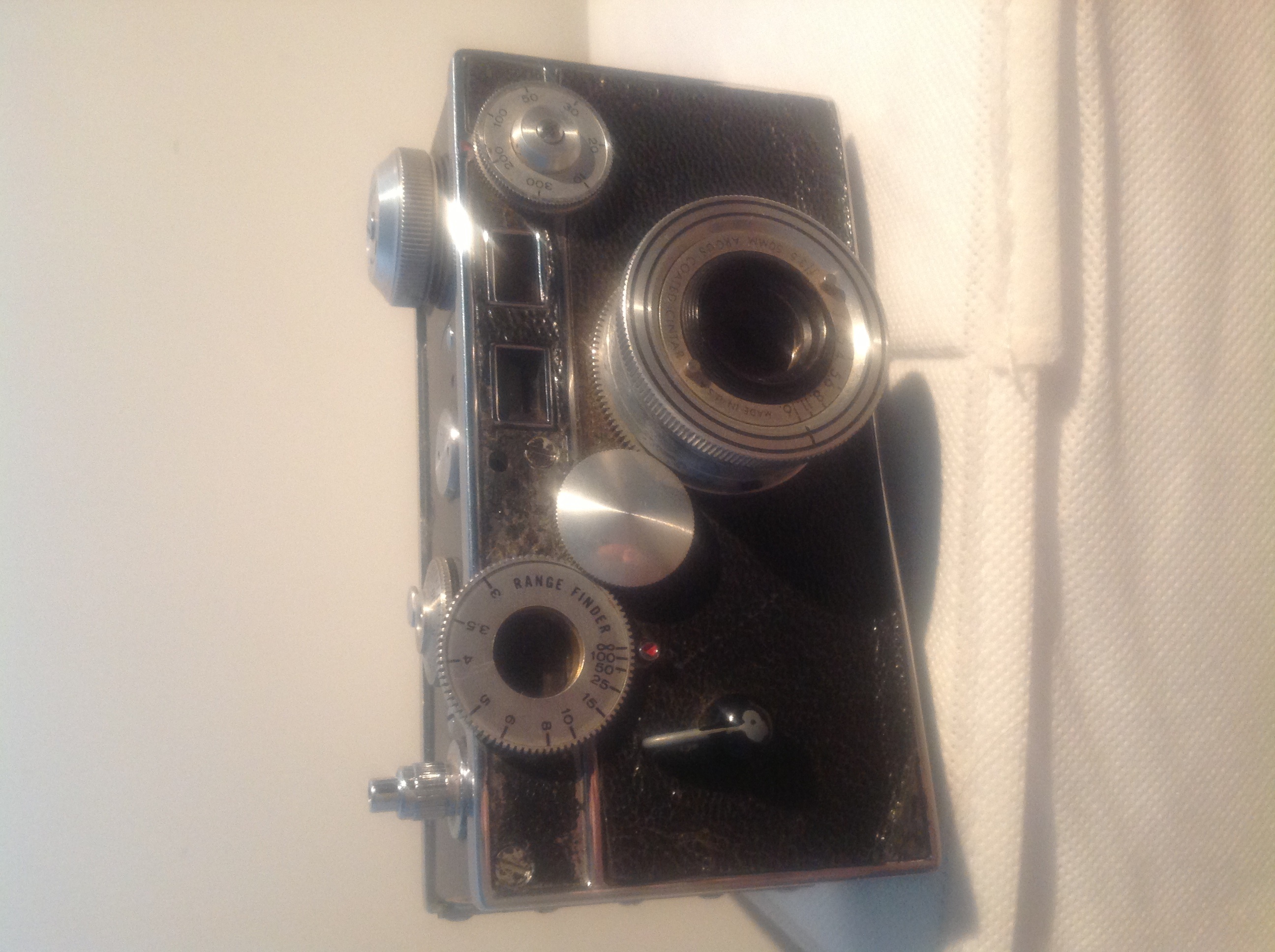 It is an Argus 35mm film camera, although I do not know what model or what year. There are no distinct markings on the camera. I had a quick search and think it might be an Argus C3 but would love to know for sure.
