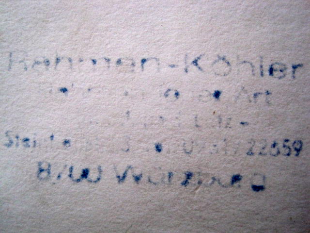 I found this amazing painting at a shop in Sarasota, Fl last month. The frame measures 18.5" X 26.5" and the linen mat's opening is 11.25" X 18.75". The painting is in excellent condition.I find it interesting that it traveled from Germany to Florida. Since I can't identify the artist any information is appreciated.