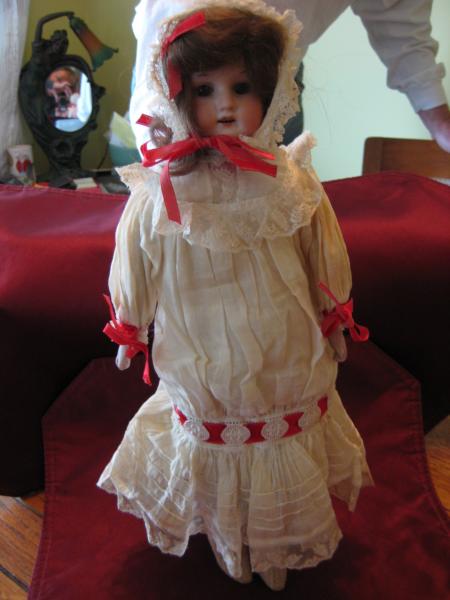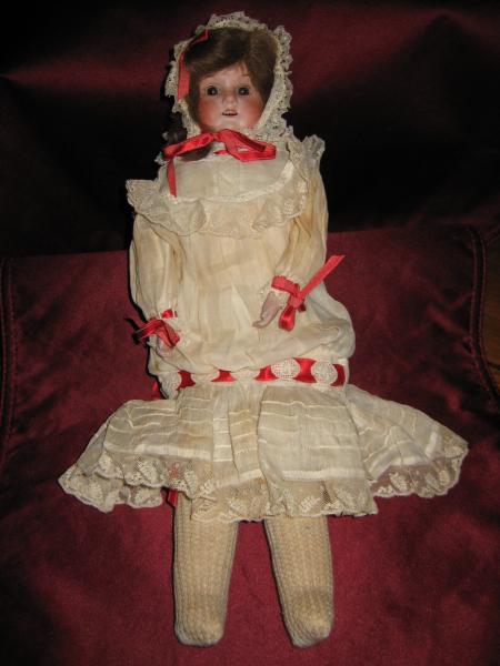 Can't tell you what great shape this doll is, other than some yellowing of the orig outfit and 1 small tear between lace and dress(about 1/8") even the buttons are orig. sleepy eyes, hair, ribbon everything. Found in a hat box and looks like it was never played with, (too bad).I just don't know anything about doll's. Hope the pictures help, I can't find any reference to the #370. 8/0. May be interested in selling, Thanks for the help.