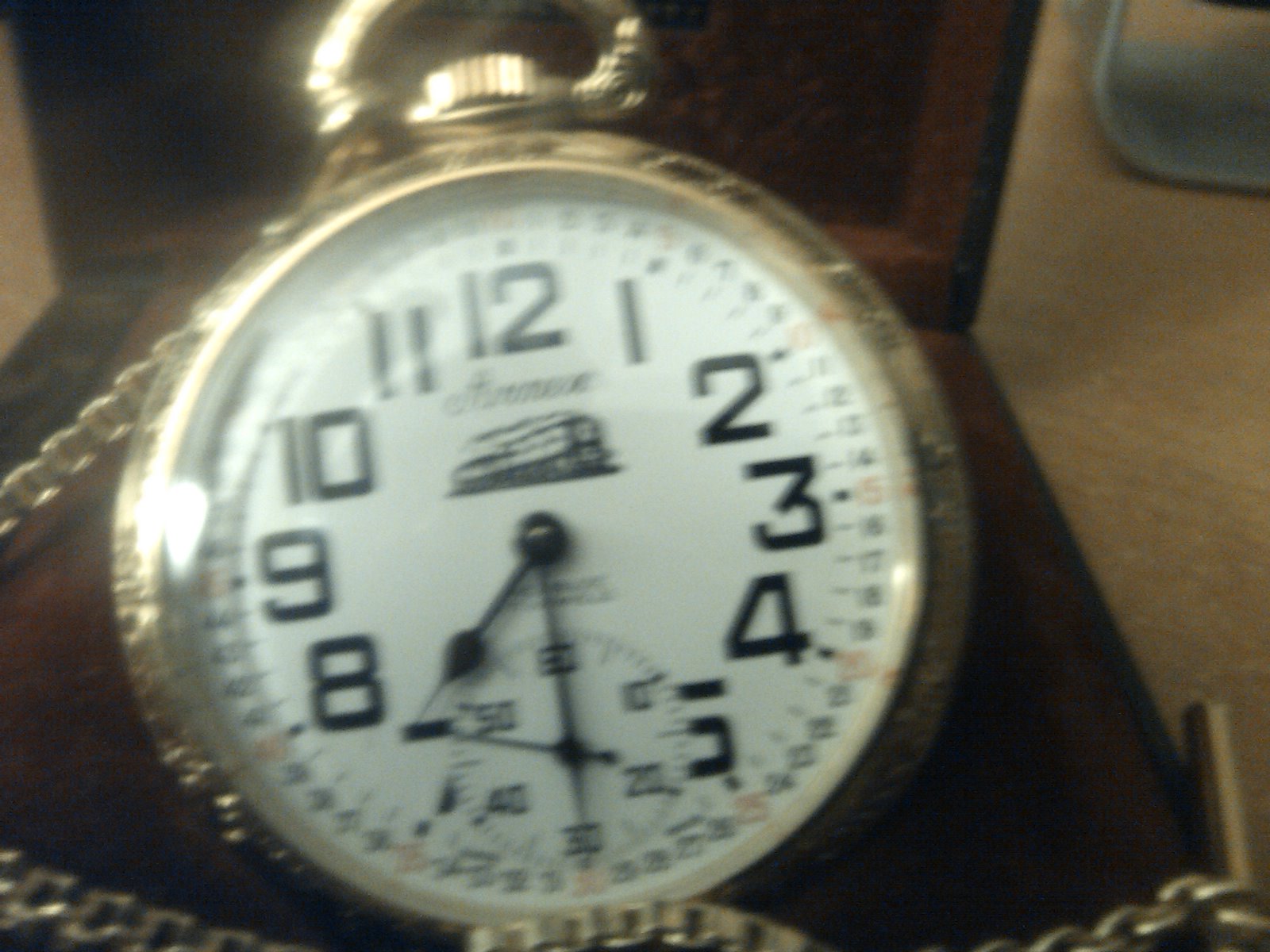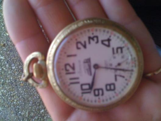 arnex gold pocket watch. still in box, 17 jewels, railroad etched in gold, incobolic, approx. 50-60 yrs old