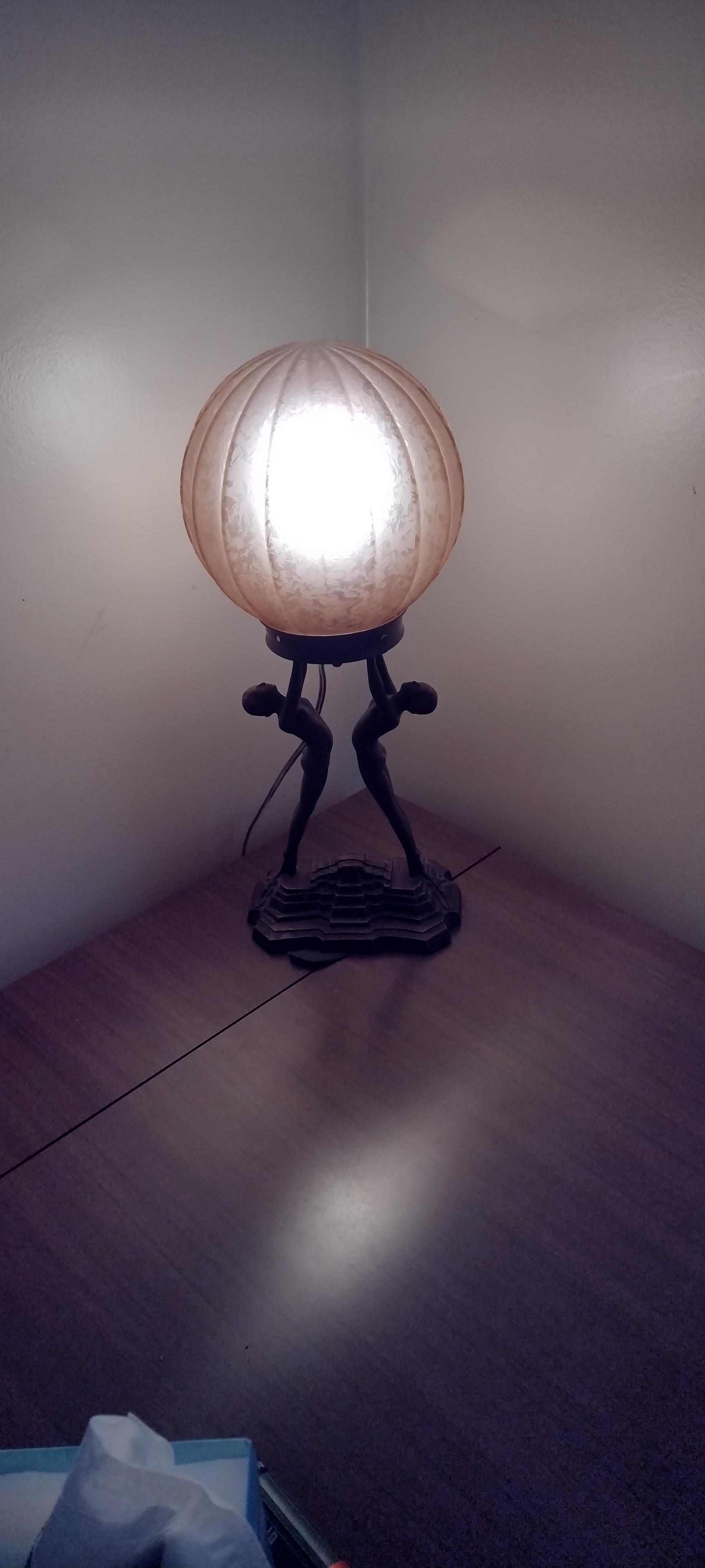 Suspected 1930s lamp double nude holding flex glass globe no visible markings