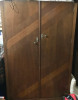 It has the original fittings and locks, 6 drawers and shelf space on the left side, and clothes bar hanging closet with shelf on the right side. The left side door of the two double doors has a a full length mirror door. Dimensions: 54" wide x 27" deep, x 78" Ht., all solid hardwoods, oak, maple, walnut. Estimated weight, 250 lbs. Email your information and est. value to me at [email protected], thanks!