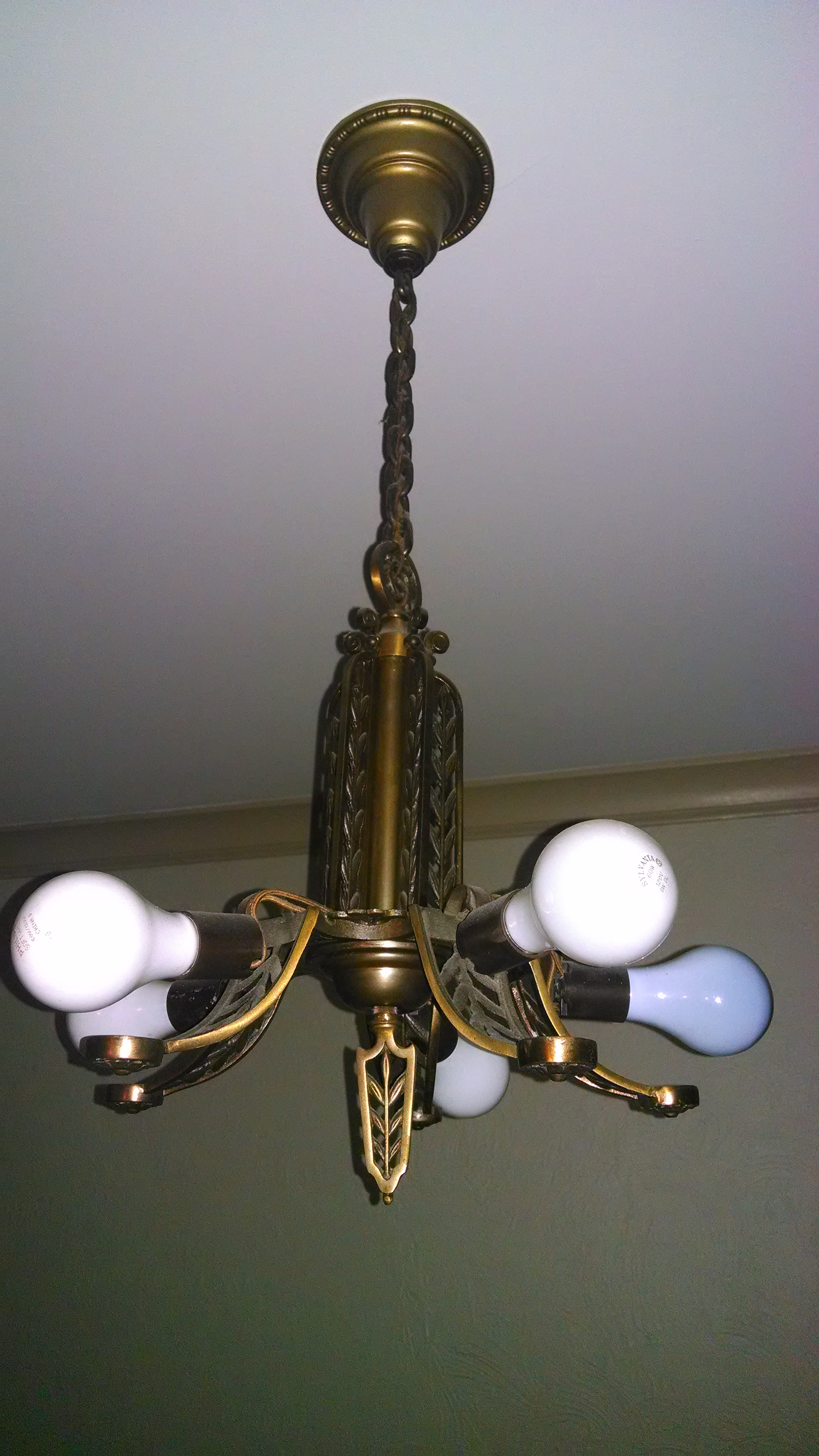 I have an art deco chandelier in my home that was built in 1937. When you remove the cap that holds the chandelier to the ceiling it says Lightolier "after sunset". I am curious to know more about it, in particular the shades and what they would have looked like? I would also like to know if there is anywhere that I could find the shades or have replica shades made? The more info I can find out about this piece the better. Thanks.