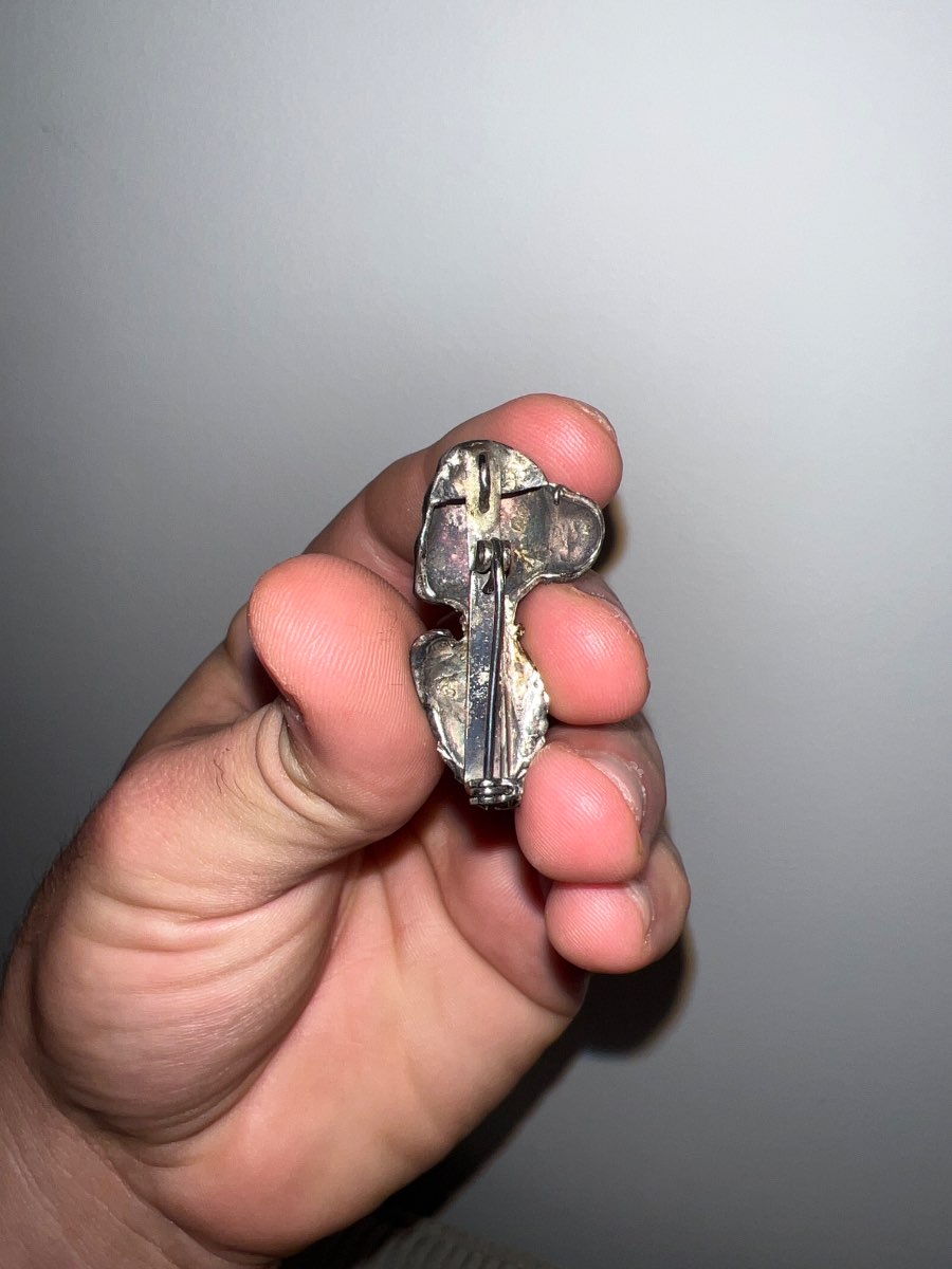Condition Assessment: The brooch is in good condition with minor wear consistent with age. There are some surface scratches and tarnishing, which is common for silver items. The pin mechanism is functional, but it may require cleaning to restore its original luster.