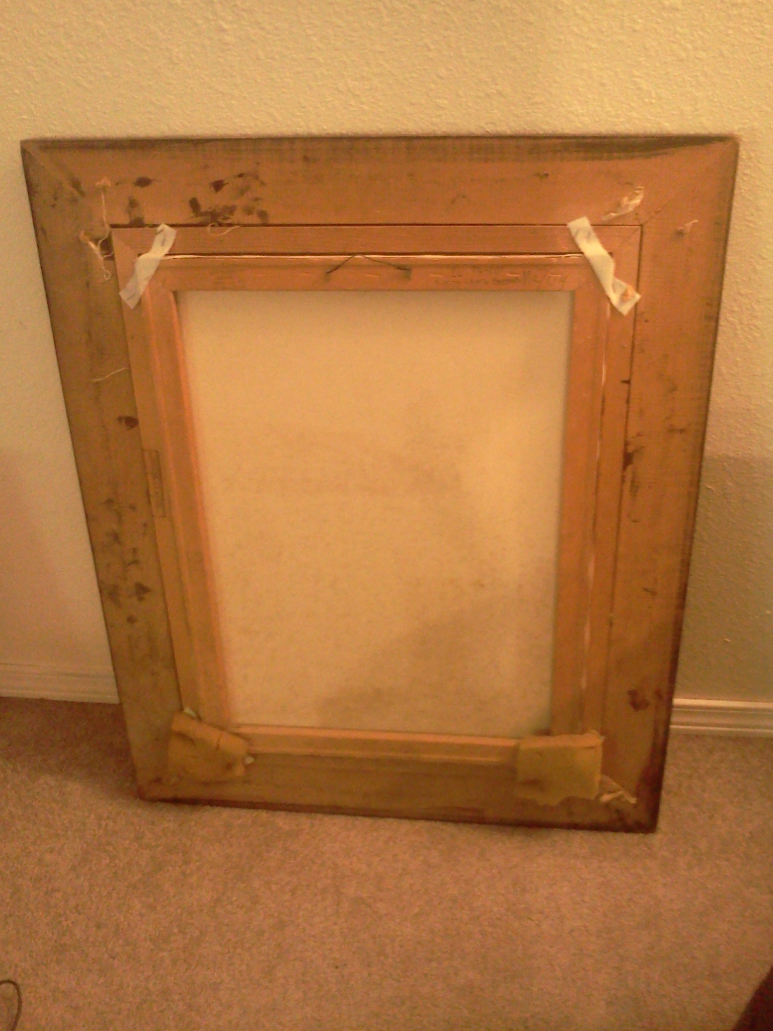 There is also what looks to be small spots of mold on the back of the painting. Not certain if this is repairable or not.
