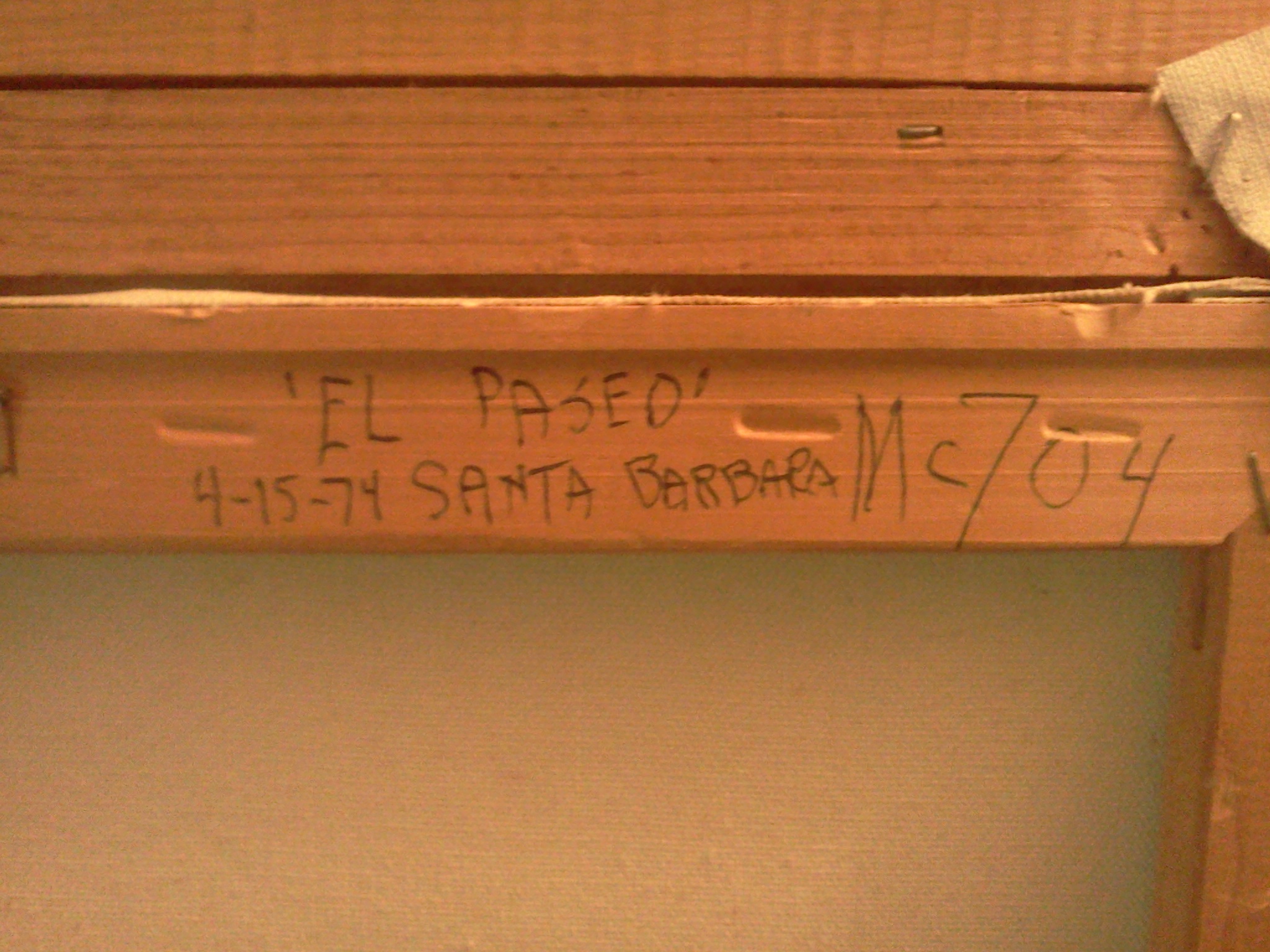 Also, the following is written on the back of the frame in what looks to be pencil. It states " 'EL PASEO' 4-15-74 SANTA BARBARA MC704"