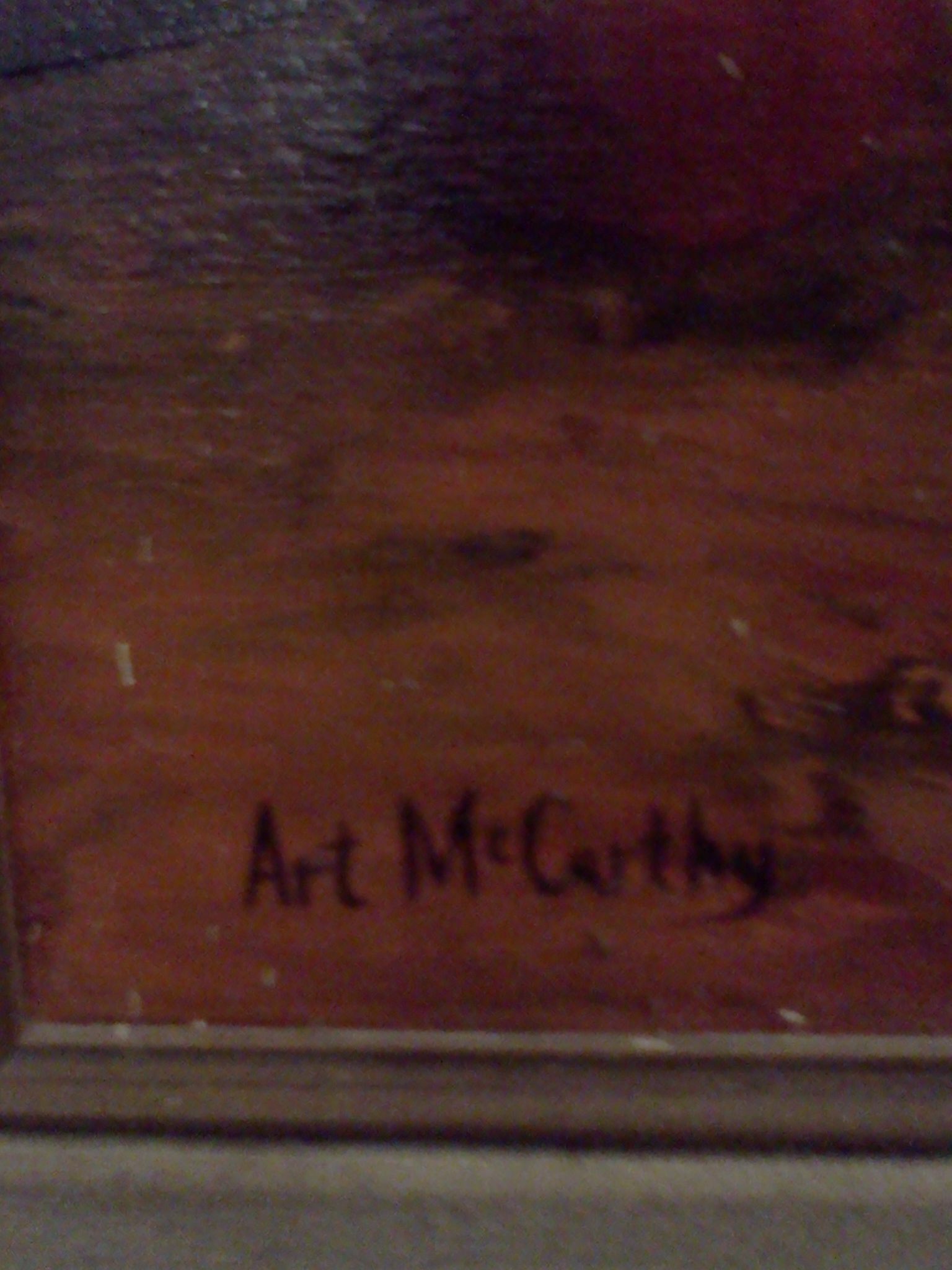 It has the signature "ART McCARTHY" in the left-hand corner of the painting. There is also other writing on the back of the frame.