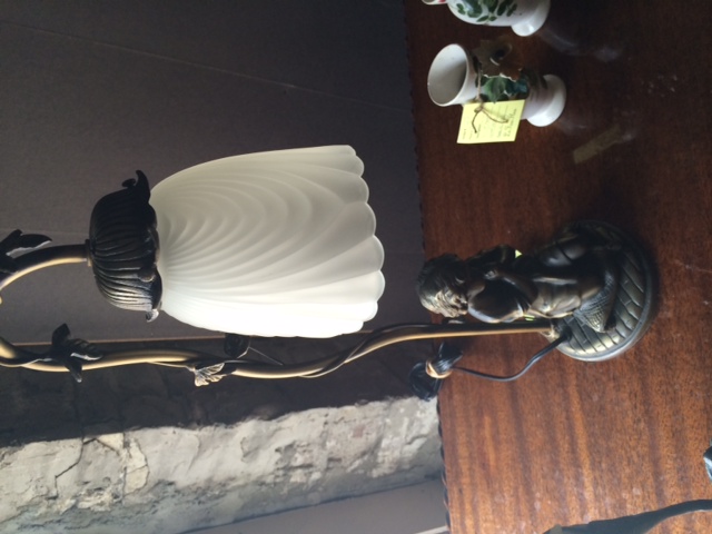 Art Nouveau Bronze Figural lamp with child kneeling on pillow. Shade is not original.
