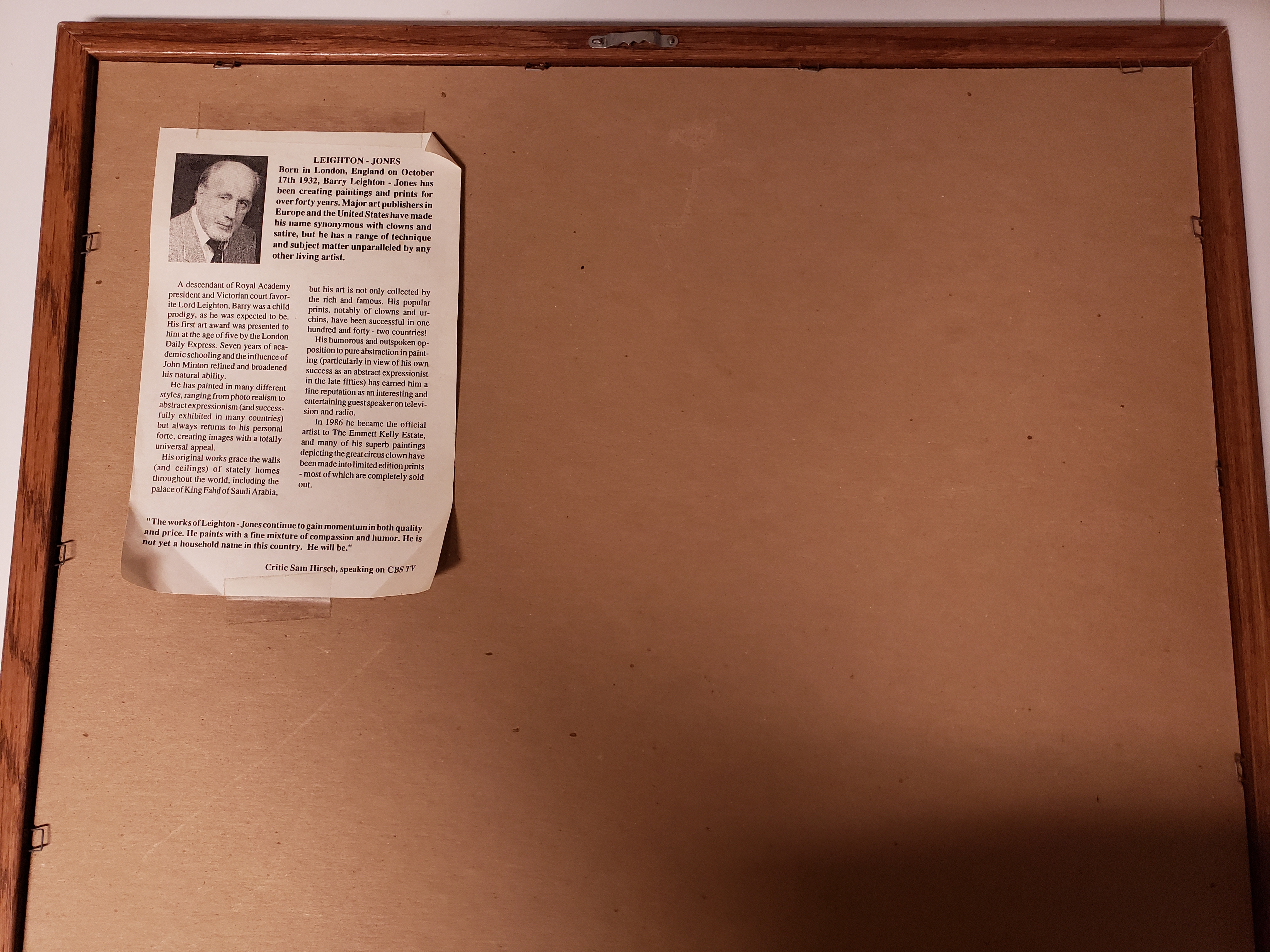 Currently framed prints by Leighton Jones are a hard sell, often going at auction for under $100.00.