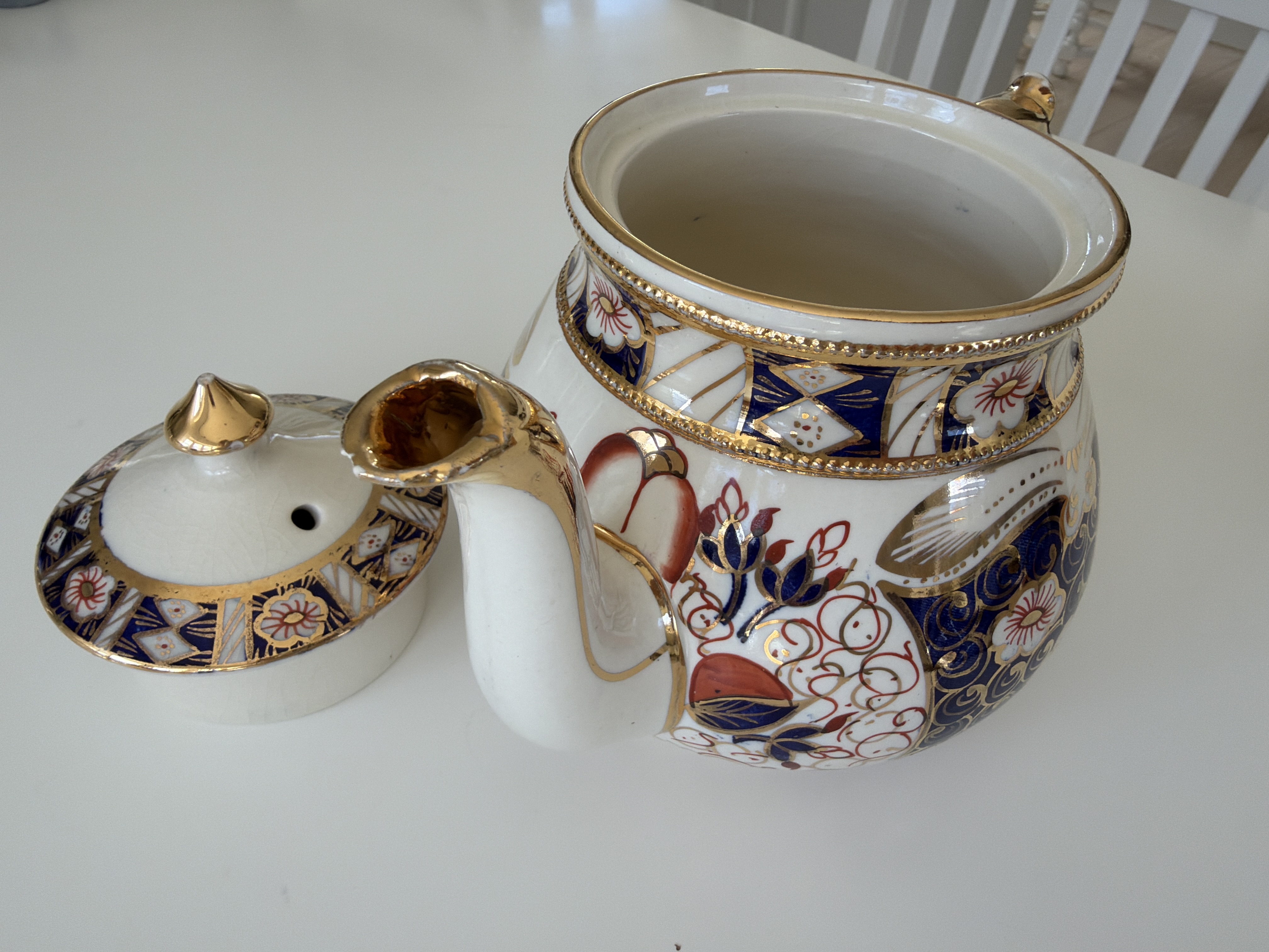 Arthur Wood Teapot. Made by Arthur Wood. Dating to c. 1920-1940. Materials: Ceramic with gold accents. Estimated value: $100 – $150. Condition: Very Good. The market for decorative ceramics from this period is stable, with moderate demand and slight price increases.