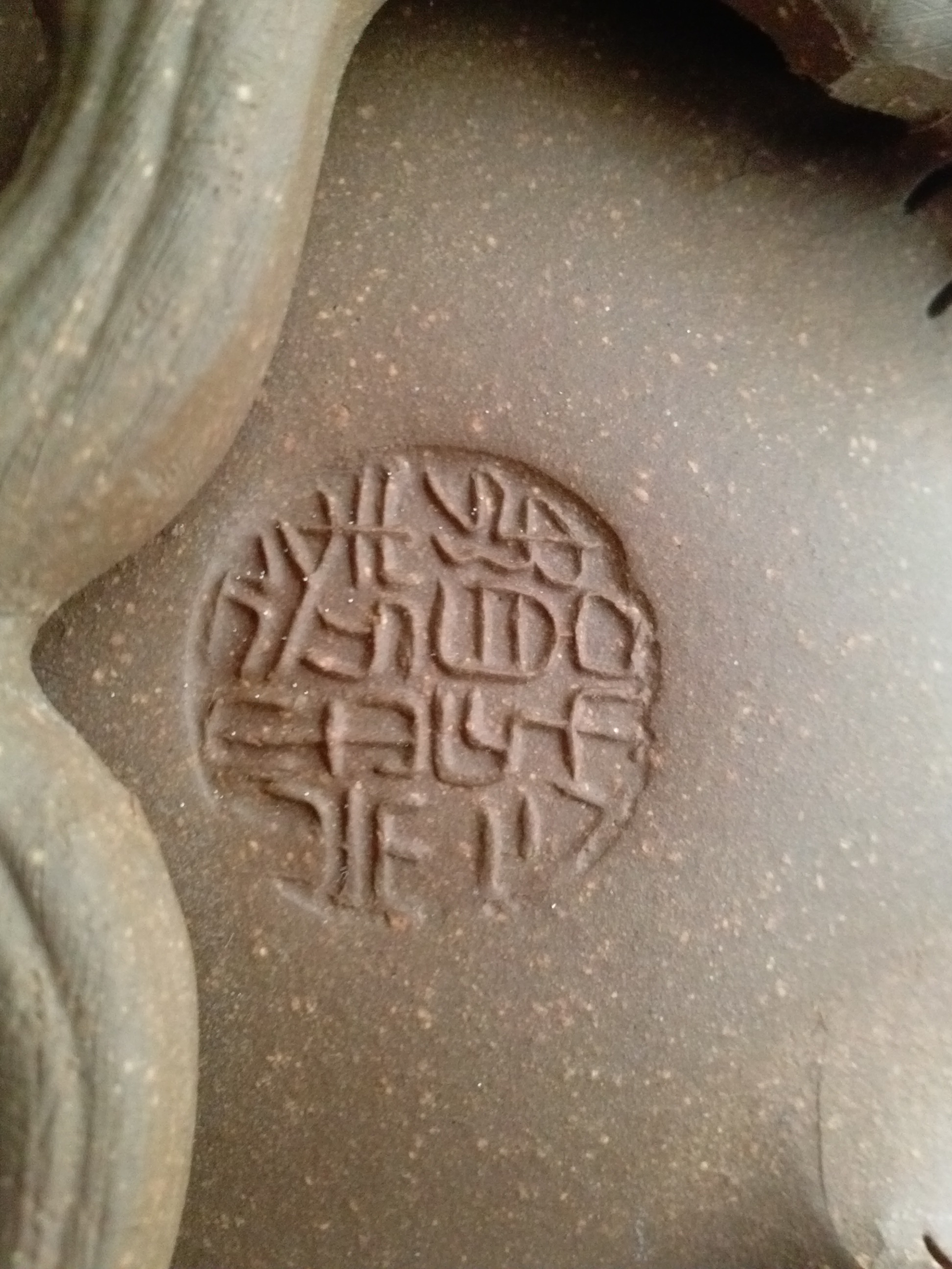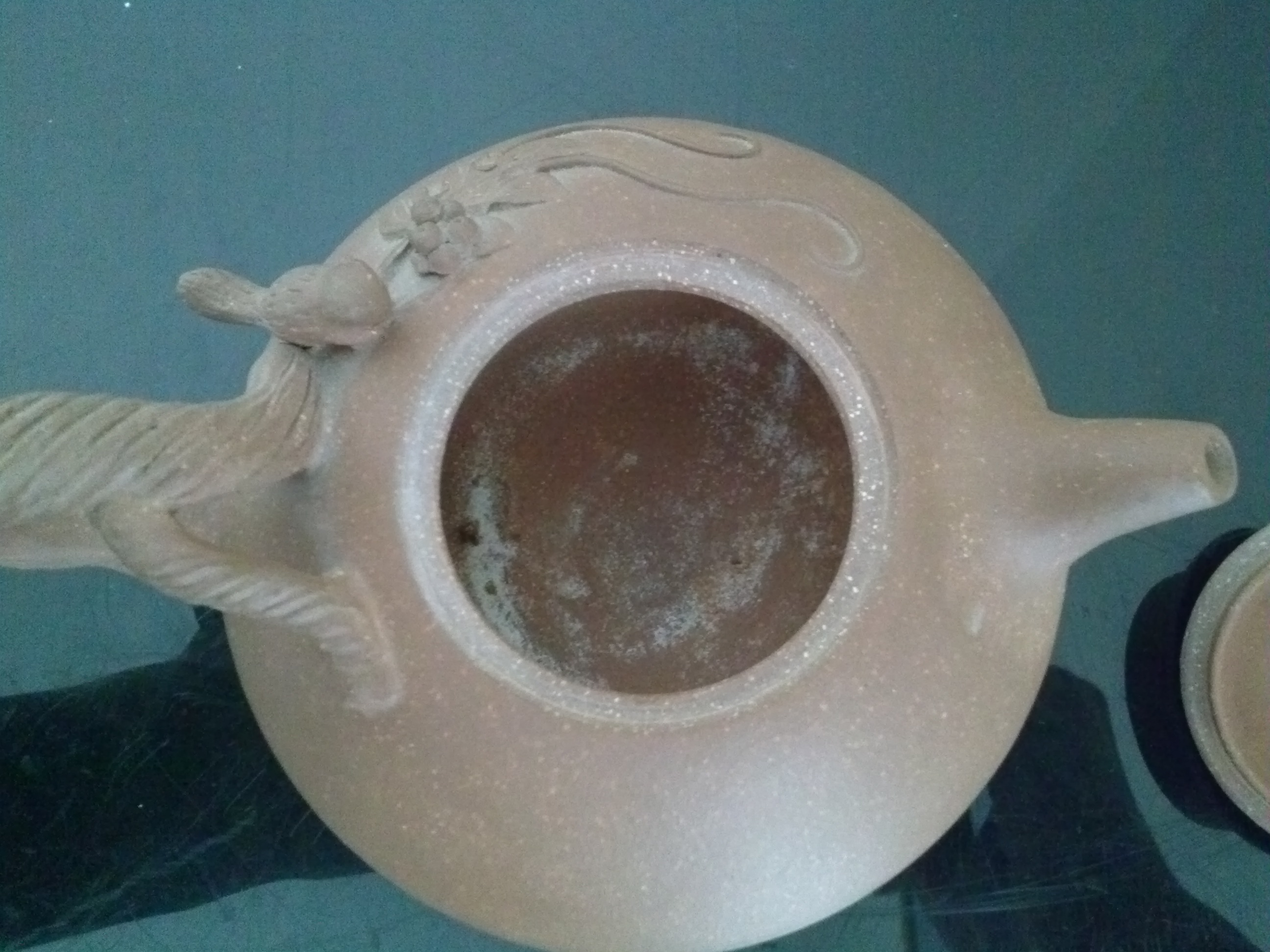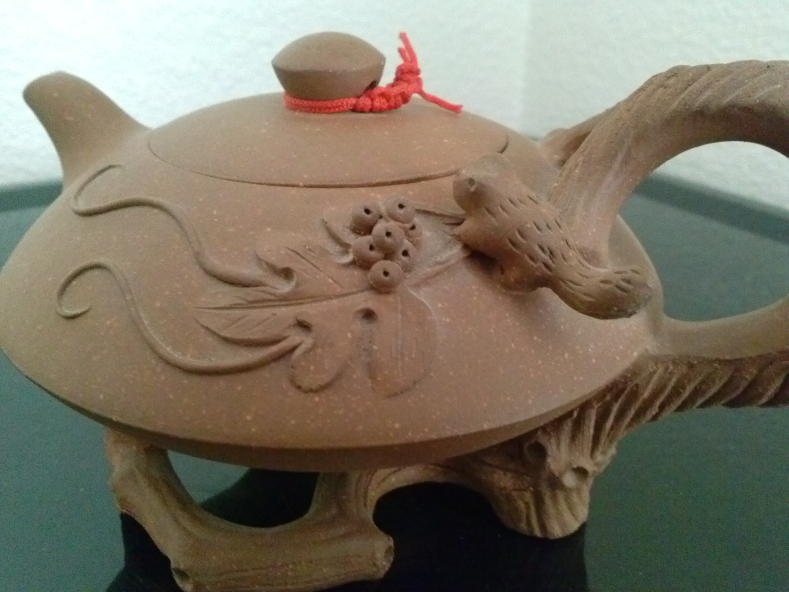 This asian looking teapot I bought at a garage sale, it did not come with a box. It is made of a brown clay with a branch shaped stand and handle with a little squirrel and berries on the side. The teapot is smooth but does not have glaze on it. The top of the teapot has a little chip on the inside. Please email me back about If this teapot is of any value and where the teapot is from or who it is made by and what the symbol is. My email is [email protected] if it is possible to email me.