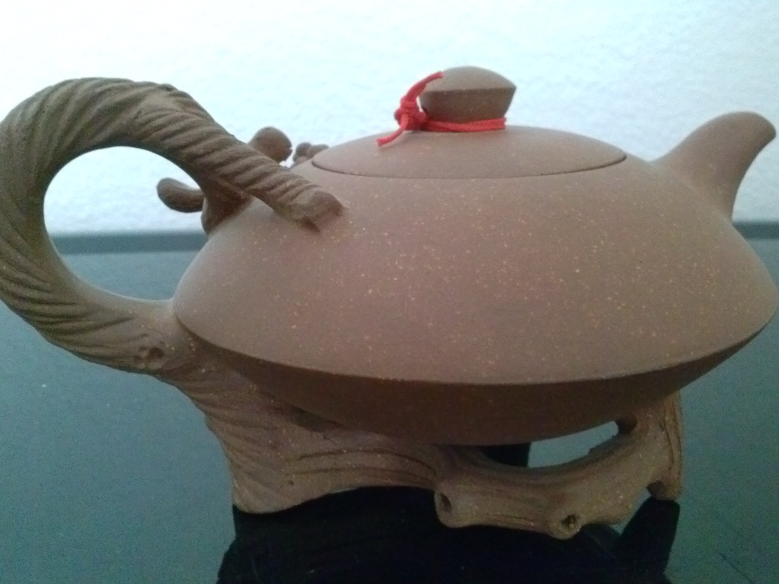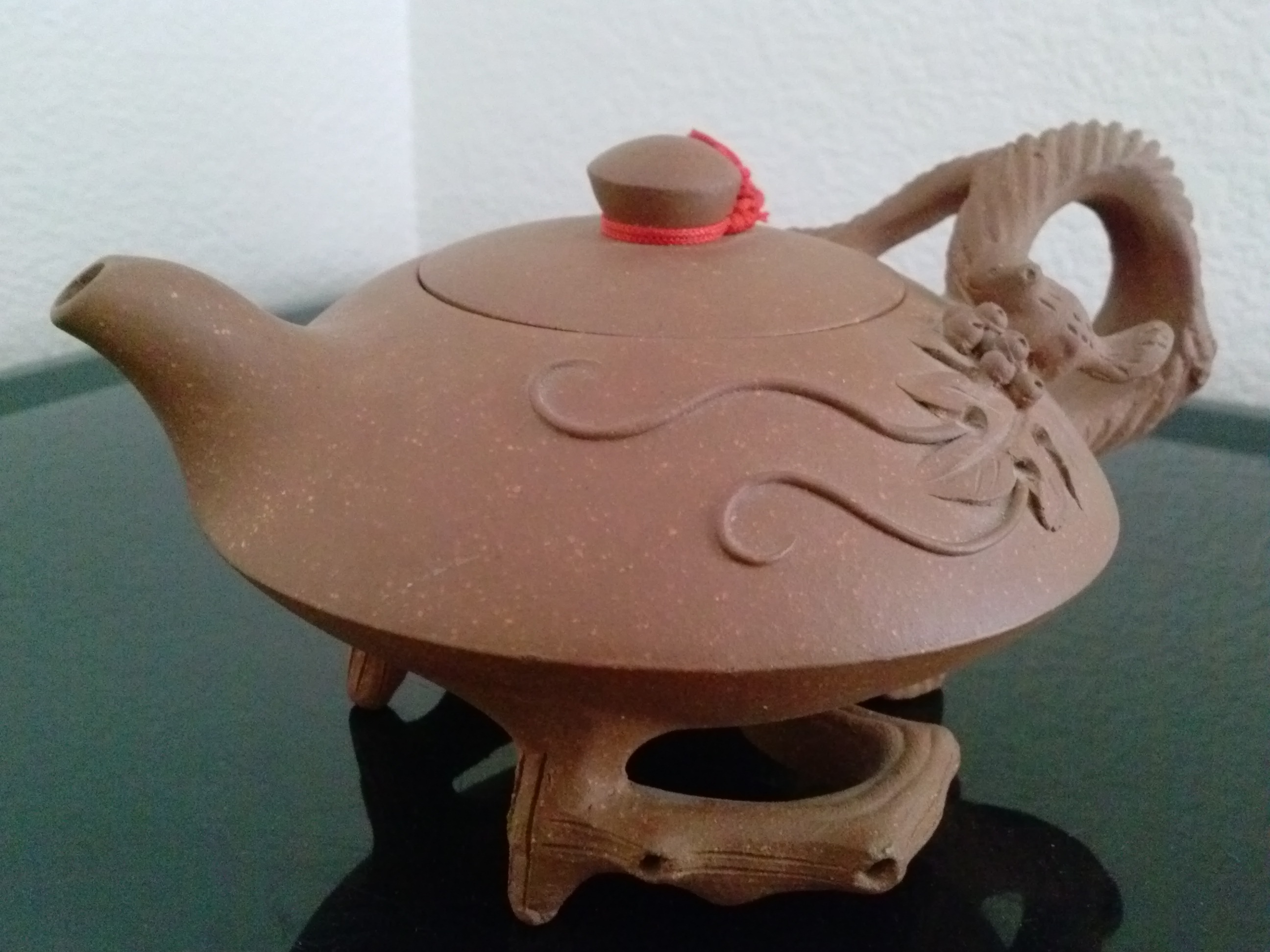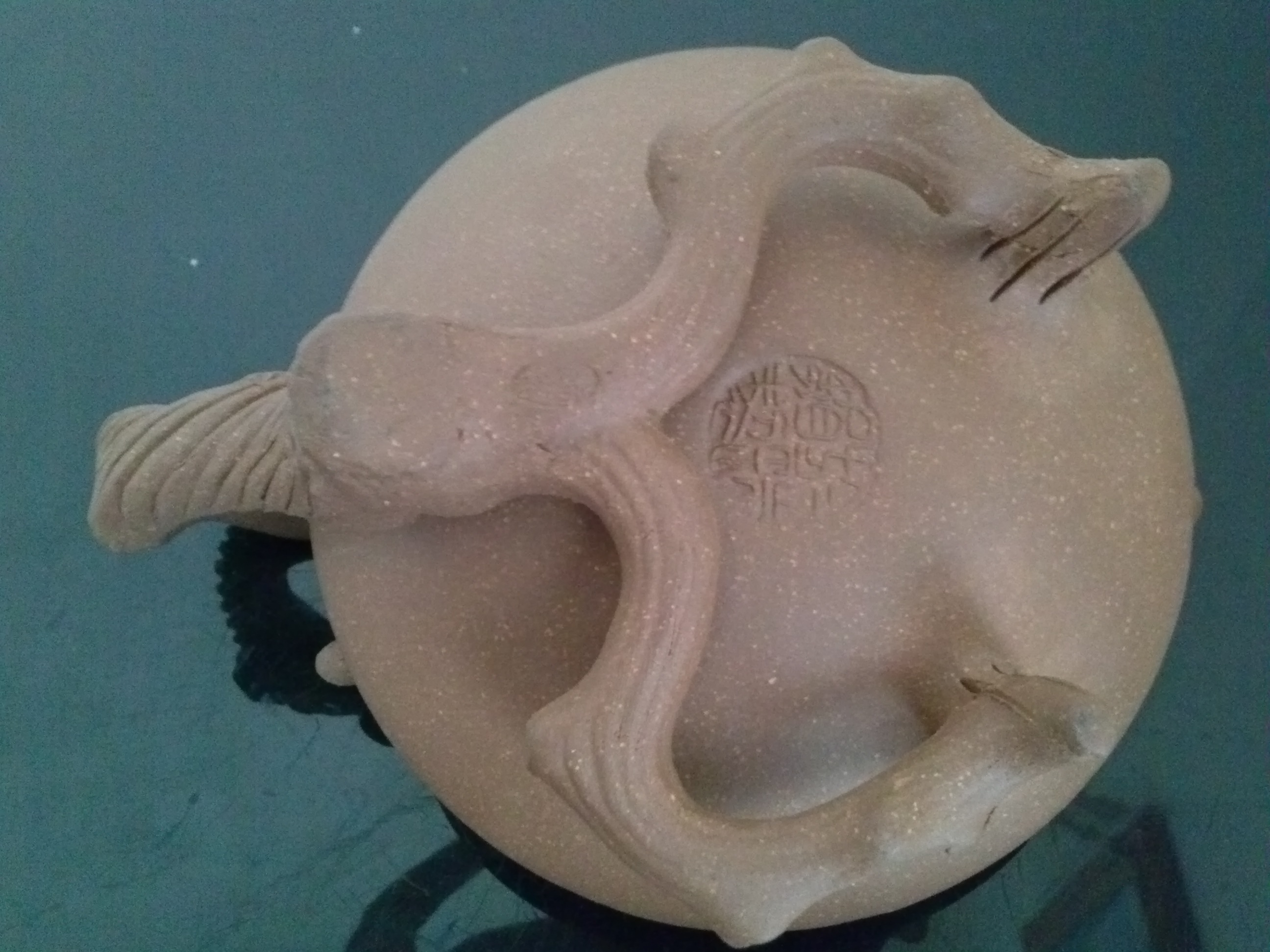 This asian looking teapot I bought at a garage sale, it did not come with a box. It is made of a brown clay with a branch shaped stand and handle with a little squirrel and berries on the side. The teapot is smooth but does not have glaze on it. The top of the teapot has a little chip on the inside. Please email me back about If this teapot is of any value and where the teapot is from or who it is made by and what the symbol is. My email is [email protected] if it is possible to email me.